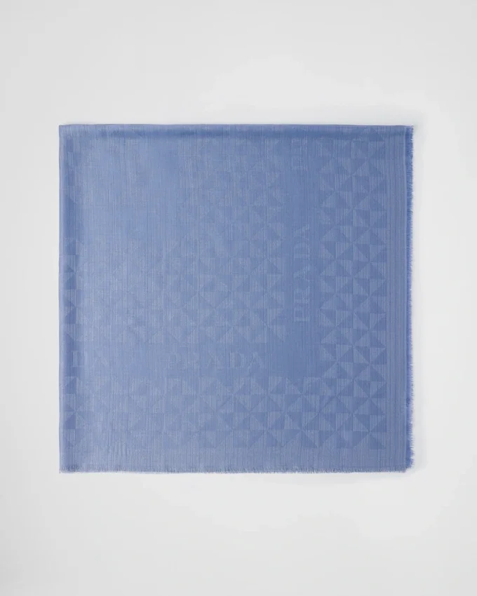 A Luxurious Silk, Wool and Cashmere Blend Enhances the Sophisticated Design of This Evening Shawl Embellished with Elegant Shimmering Touches of the Metallic Yarn. The Wraparound Style with Fringed Edges Features a Modernist Geometric Pattern That Alternates with Solid Color Bands Decorated with Delicate Jacquard Logos.