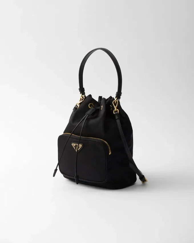 The Prada Duet Bucket Bag with a Soft, Versatile Silhouette Expresses a Contemporary, Functional Character. The Accessory Made of Re-Nylon is Characterized by an External Zipper Pocket and Can Be Carried by Hand or Worn as a Cross-Body Bag with the Leather Shoulder Strap. For Sustainable Care to Preserve the Product’s Characteristics and Reduce Microfiber Shedding, We Recommend Not Washing the Item Too Often. Let the Product Air out After Every Use and Have It Dry Cleaned at a Specialized Ecological Dry Cleaners.