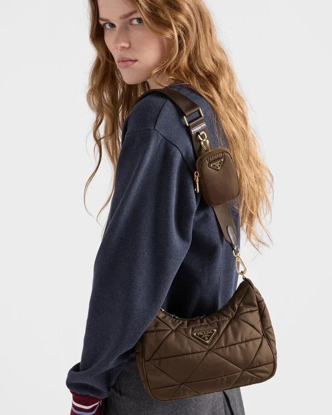 A Triangle Motif Characterizes This Padded Hobo Bag, Crafted from Re-Nylon with a Soft Design. The Style is Adorned with the Iconic Enamel Metal Triangle Logo and Comes with a Detachable Nylon Zipper Pouch for Added Functionality and a Contemporary Touch. For Sustainable Care to Preserve the Product’s Characteristics and Reduce Microfiber Shedding, We Recommend Not Washing the Item Too Often. Let the Product Air out After Every Use and Have It Dry Cleaned at a Specialized Ecological Dry Cleaners.