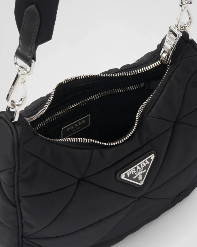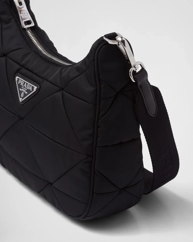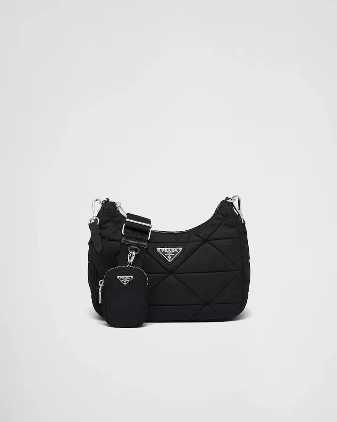 A Triangle Patchwork Motif Characterizes This Padded Re-Nylon Hobo Bag Designed to Also Be Worn as a Shoulder Bag Thanks to the Adjustable Logo-Print Strap. Embellished on the Front with the Iconic Enameled Metal Triangle Logo, the Multifunctional Accessory is Completed with a Detachable Nylon Zipper Pouch That Hooks onto the Shoulder Strap. For Sustainable Care to Preserve the Product’s Characteristics and Reduce Microfiber Shedding, We Recommend Not Washing the Item Too Often. Let the Product Air out After Every Use and Have It Dry Cleaned at a Specialized Ecological Dry Cleaners.