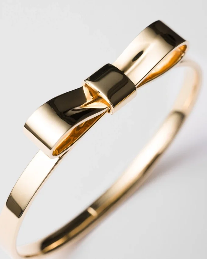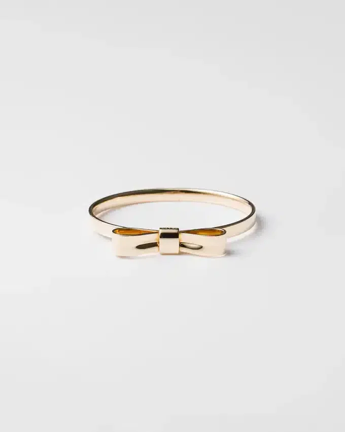 The Rediscovery of Jewelry Archetypes Continues with a Modern Interpretation of the Bow, an Eternal and Delicate Symbol Transformed in Form and Meaning According to Prada’s Unique Codes. This Bangle Bracelet Made of Recycled Yellow Gold with Pure, Simple Lines is an Expression of Refined, Contemporary Femininity.