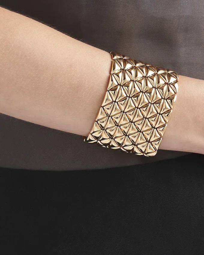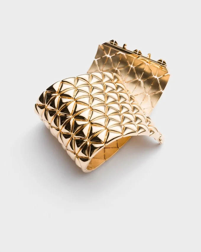 A Continuously Evolving Symbol, the Triangle Embodies Prada’s Dualistic and Unconventional Soul, Lending Itself to Always New and Surprising Interpretations. Introduced in 1913 by Mario Prada, the Iconic Geometric Shape Becomes a Structural Element of This Bracelet Made of Recycled Yellow Gold with an Original Cut. The Jewel Reinterprets the Classic Cuff Bracelet with Refined, Contemporary Lines, Transforming It into a Sculpture Design. The Unique, Precious Object is an Expression of a Fine Jewelry Collection That Blends Creativity, Innovation and Masterful Artisan Know-How.