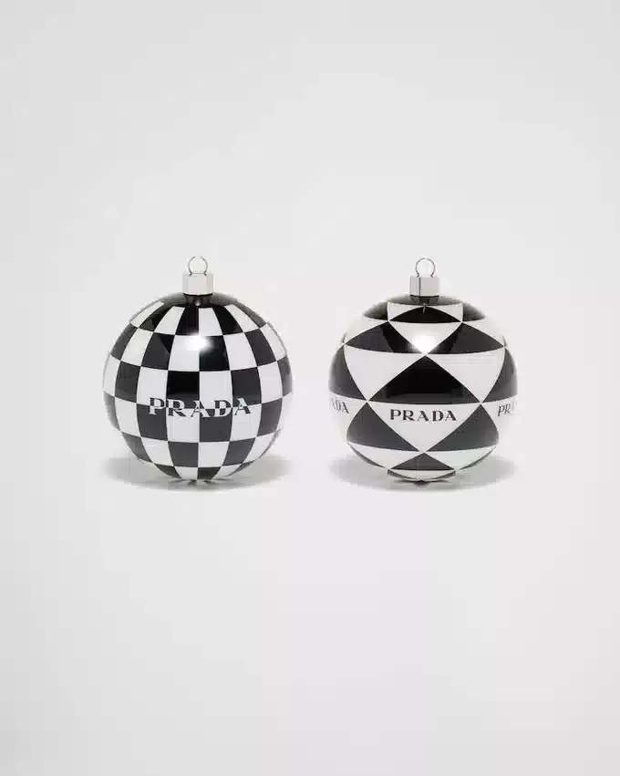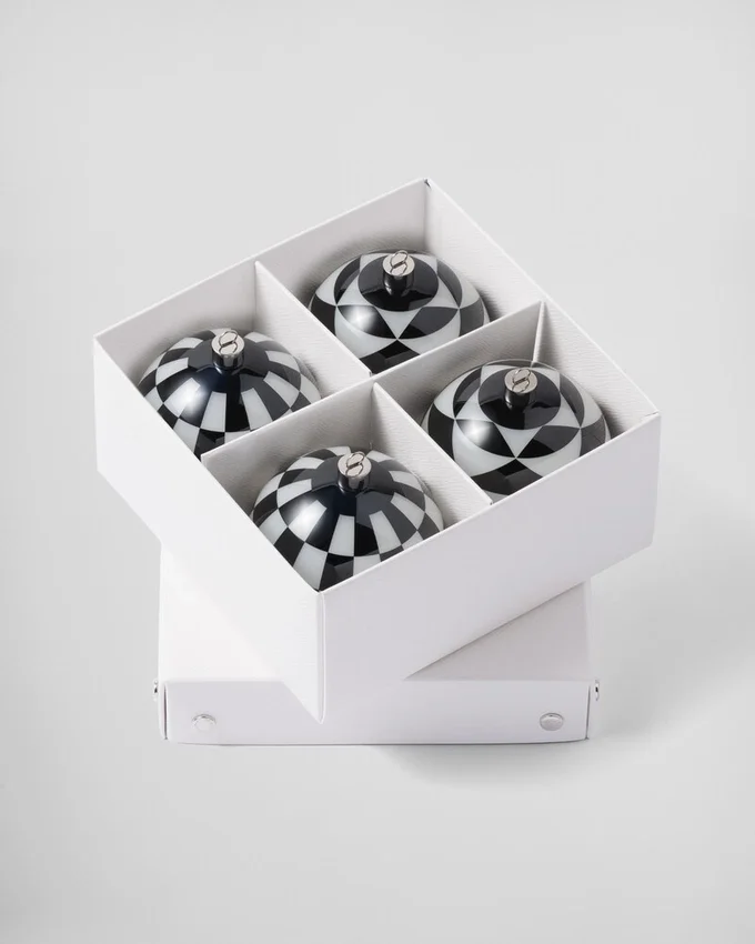 Designed as a Collector’s Item or as a Unique and Timeless Gift, This Set of Glass Christmas Ornaments Features Geometric Patterns Characteristic of the Brand and Decorated with the Prada Logo.