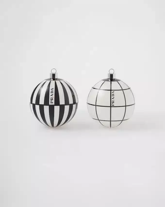 Designed as a Collector’s Item or as a Unique and Timeless Gift, This Set of Glass Christmas Ornaments Features Geometric Patterns Characteristic of the Brand and Decorated with the Prada Logo.
