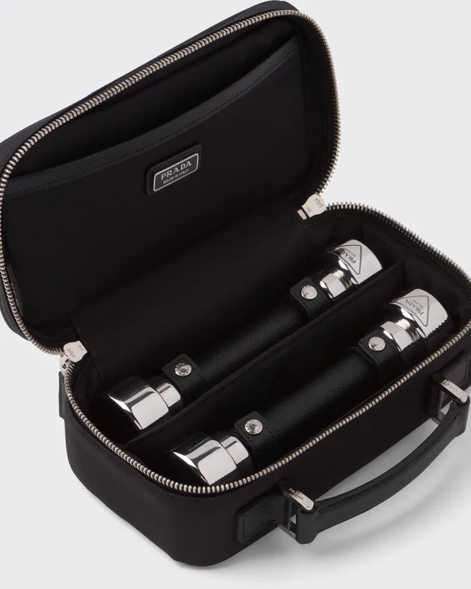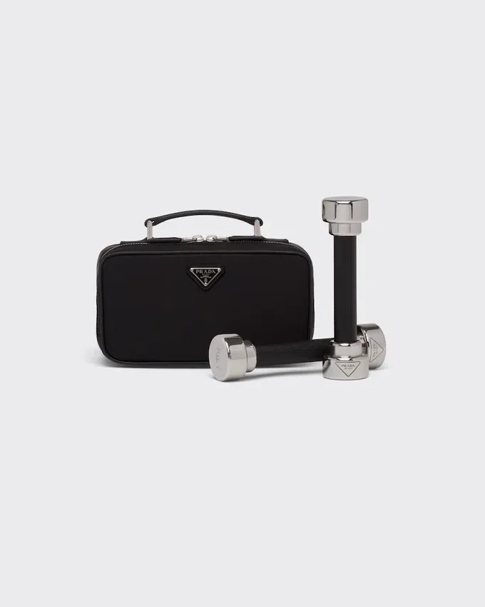 Made of Innovative Re-Nylon, the Fabric Produced from Recycled Plastic Collected in the Ocean, This Sleek Carry Case Holds a Set of Steel Hand Weights Covered in Iconic Saffiano Leather and Decorated with the Engraved Logo. For Sustainable Care to Preserve the Product’s Characteristics and Reduce Microfiber Shedding, We Recommend Not Washing the Item Too Often. Let the Product Air out After Every Use and Have It Dry Cleaned at a Specialized Ecological Dry Cleaners.