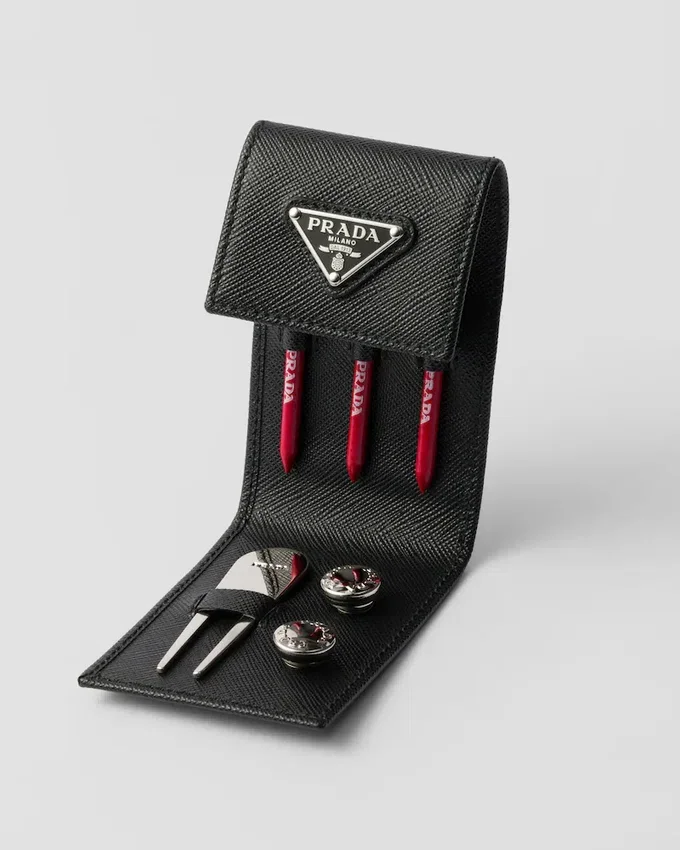 This Elegant Saffiano Leather Case for Golf Accessories is Completed by the Distinctive Triangle Logo That Embellishes the Sleek, Compact Design.