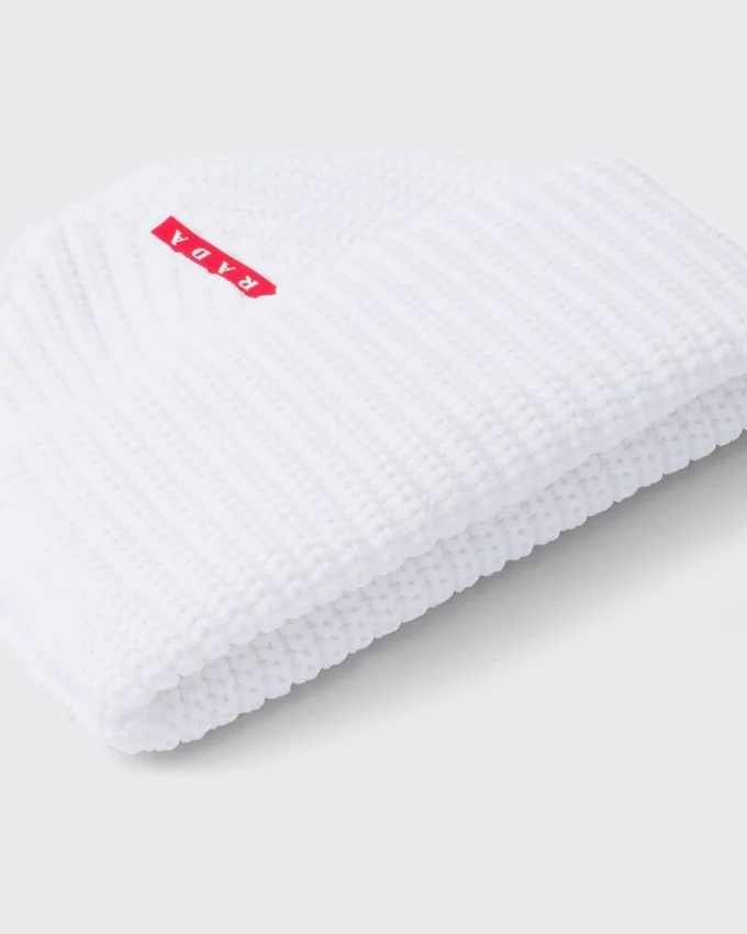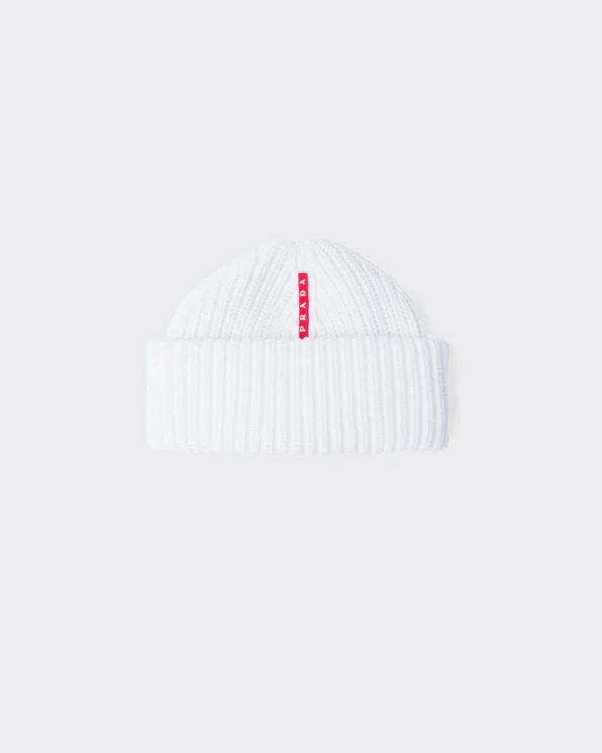 The Emblematic Prada Linea Rossa Logo Adds a Splash of Color on This Beanie Made of Tec Rec Nylon, a Technical Knit Made from Recycled Yarns and with a Ribbed Knit Motif. This Product Does Not Contribute to the Sea Beyond Educational Program.