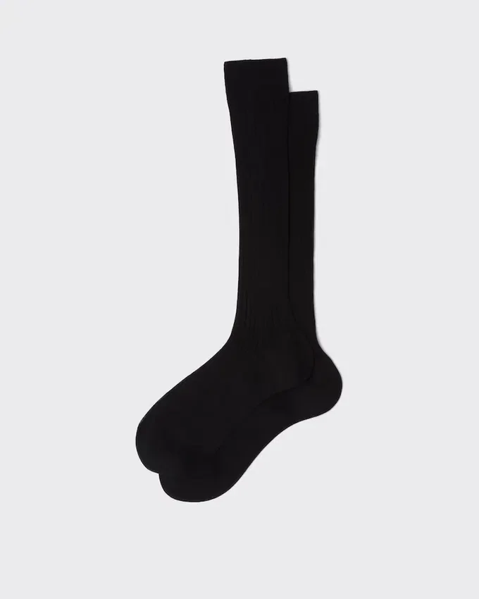 The Refined Ribbed Knit Motif Decorates These Cotton Socks with Contemporary Charm.