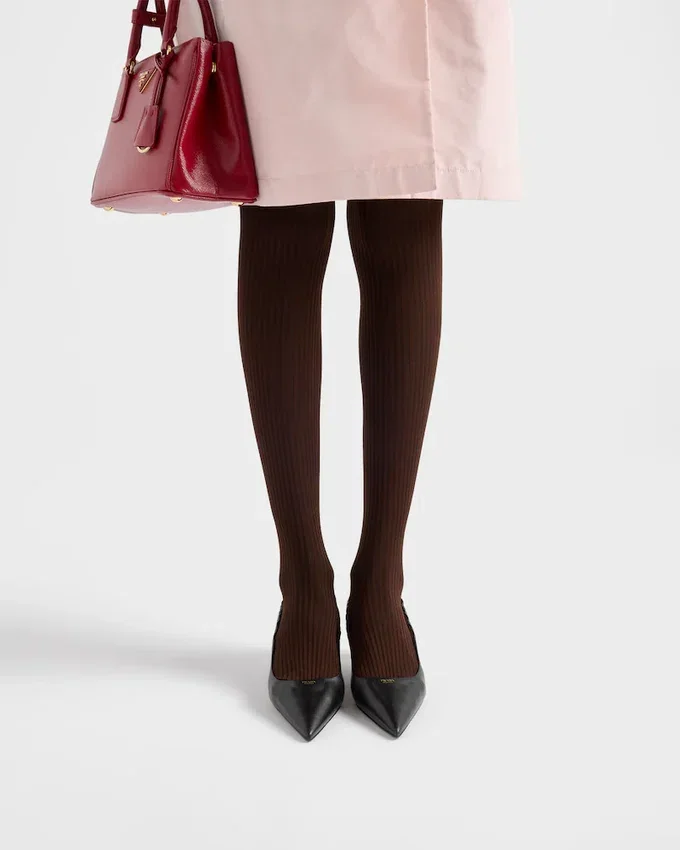 These Refined Stockings Made of Finely Knit Silk Are Enriched with a Ribbed Knit Motif.