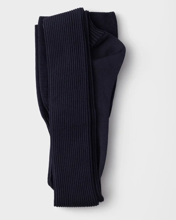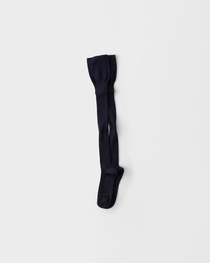 These Refined Stockings Made of Finely Knit Silk Are Enriched with a Ribbed Knit Motif.