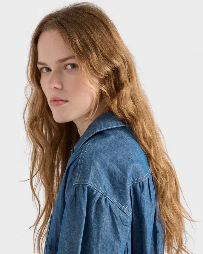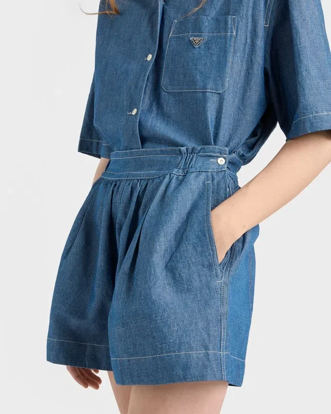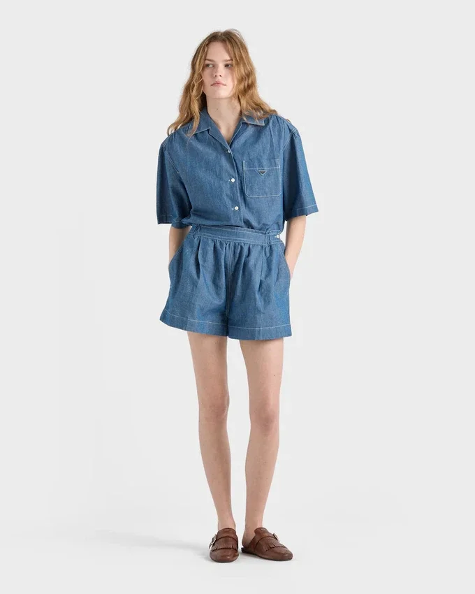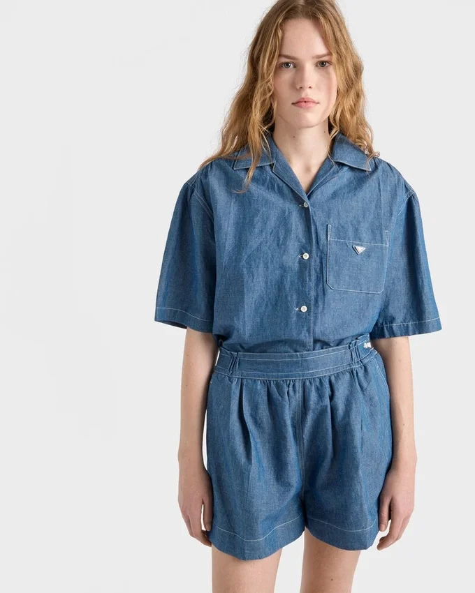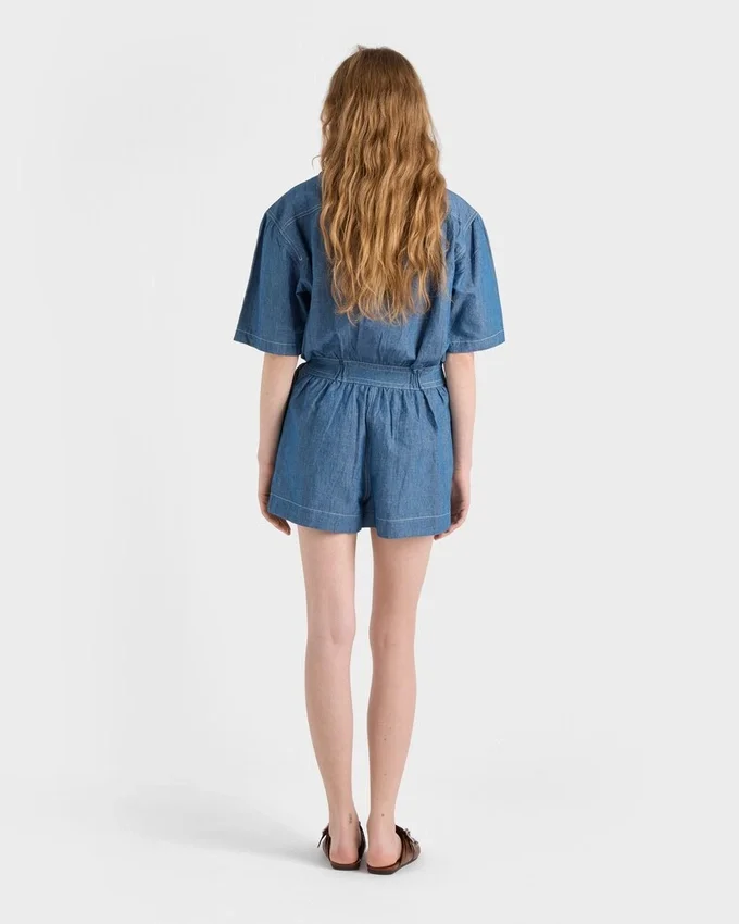 Workwear is Reinterpreted in a Minimalist Way Through Contemporary Lines and Refined Details. This Short-Sleeved Jumpsuit with a Boxy Silhouette is Made of Chambray Fabric That Defines the Lightweight Garment with a Sleek Aesthetic.