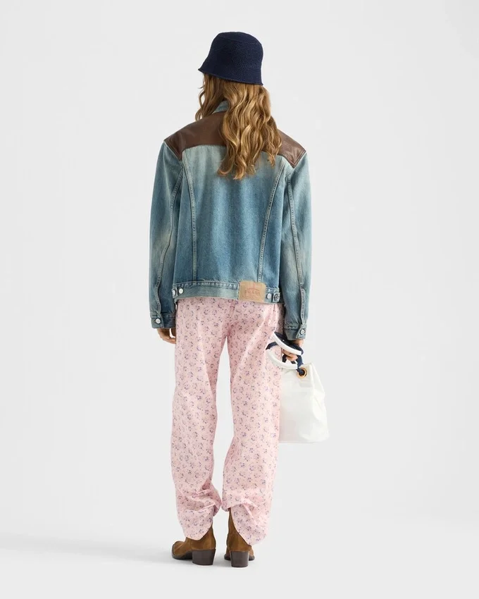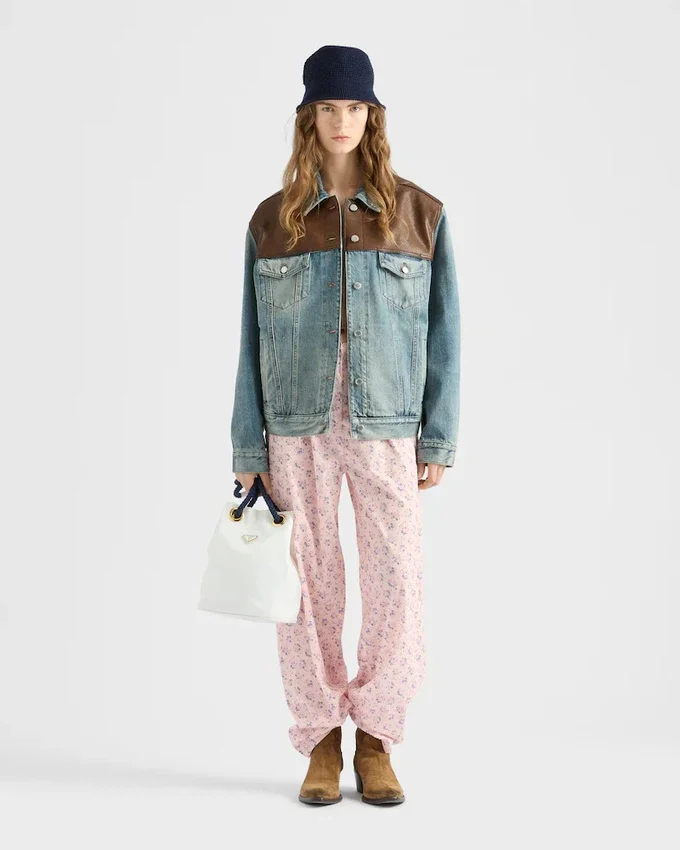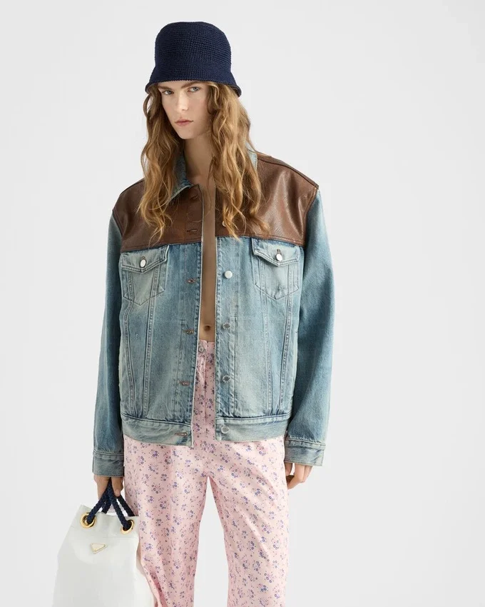 New Proportions and Details with Vintage Allure Define This Bleached Denim Blouson Jacket. The Design is Enriched with a Leather Insert with Distressed Finish That Emphasizes the Strong, Oversized Lines of the Silhouette.