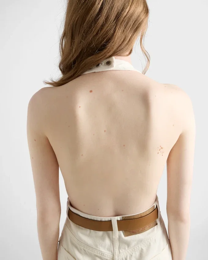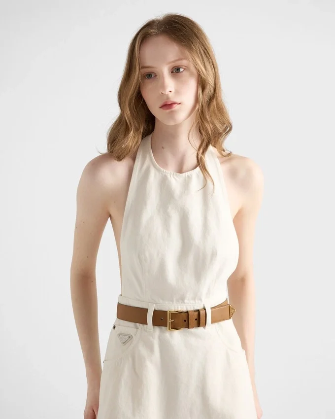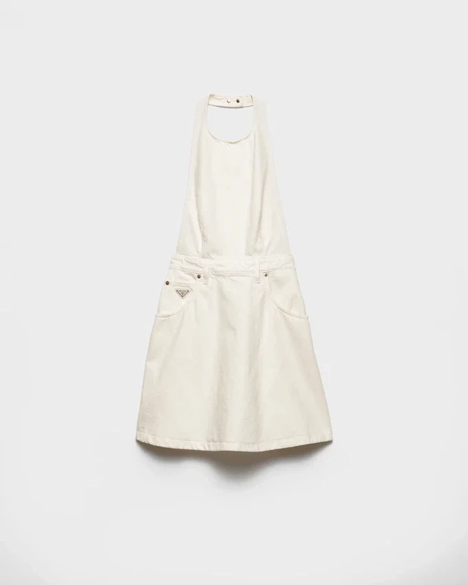 Denim Gives Structure to the Silhouette of This Mini-Dress with Flared Lines and Halter Neck. Classic Details and Retro Touches Are Combined in This Hybrid Design with Contemporary Allure.