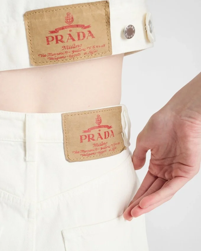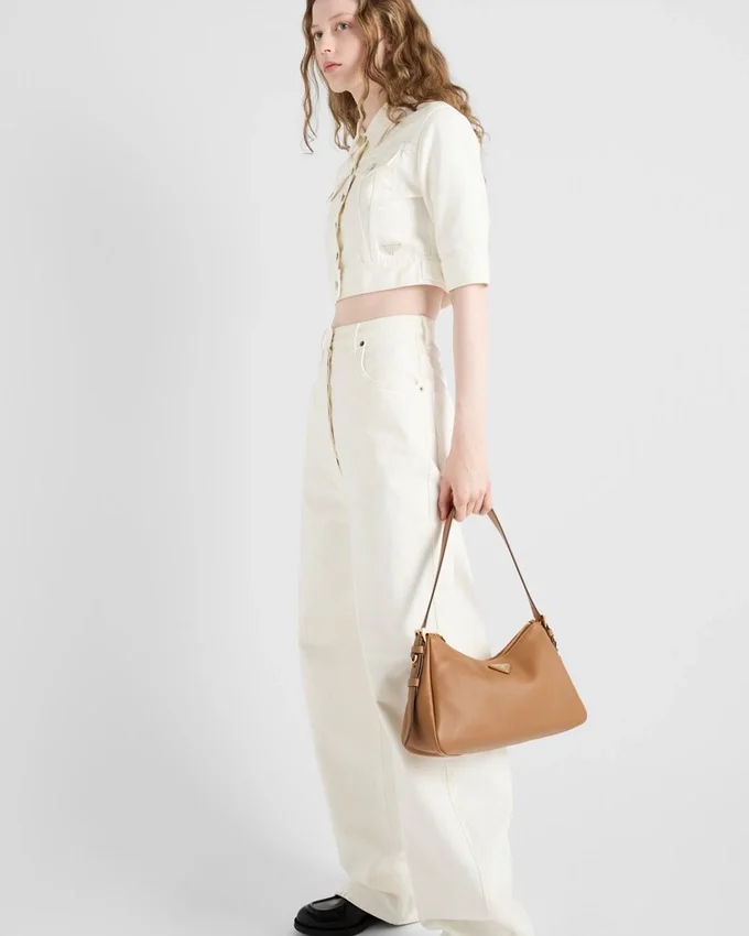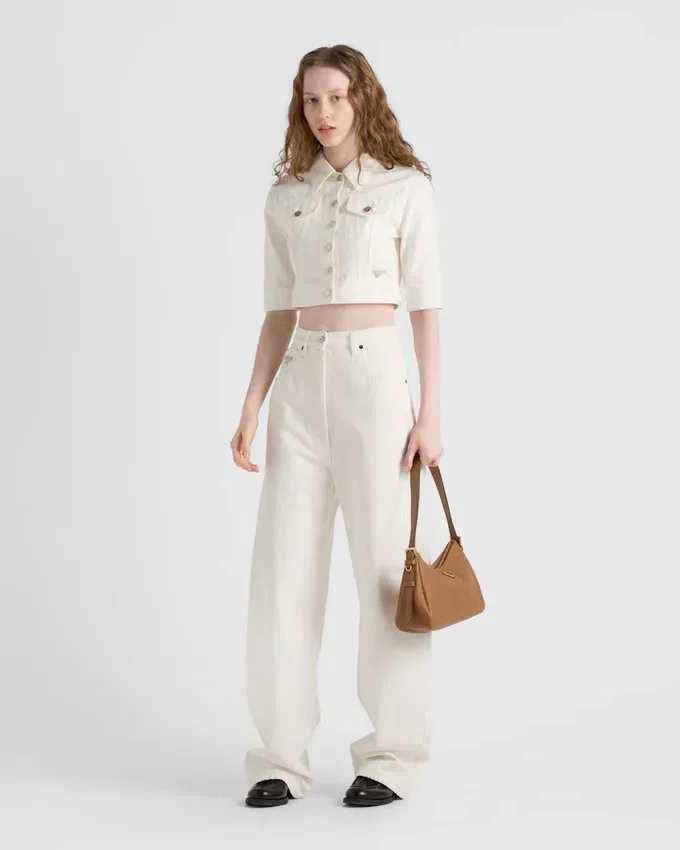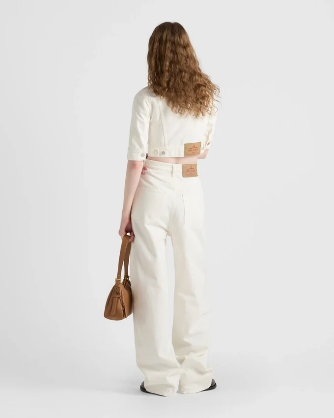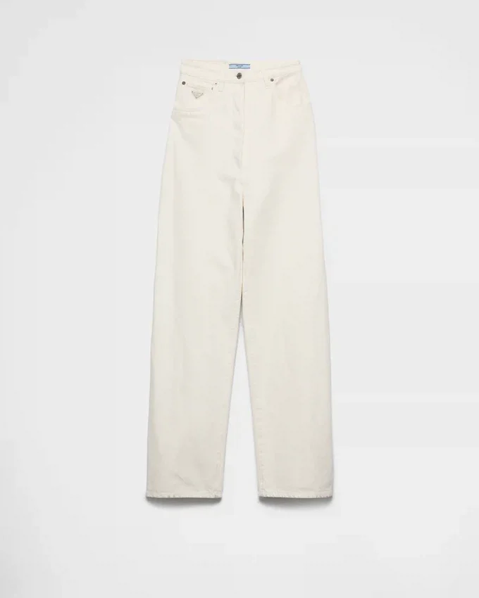 Oversized Volumes and Curved Lines Create the Silhouette of These Jeans with Contemporary Style. The Denim Style Has a Wide-Legged Design and is Decorated with the Enameled Metal Triangle Logo.