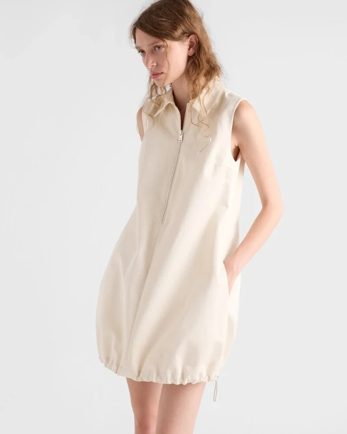 Clean Lines and Sleek Details Define This Mini-Dress with Contemporary Elegance. The Minimalist Silhouette Plays with Feminine Elements and Sporty Touches, While the Drawstring Hem Adds Soft Volume to the Style.