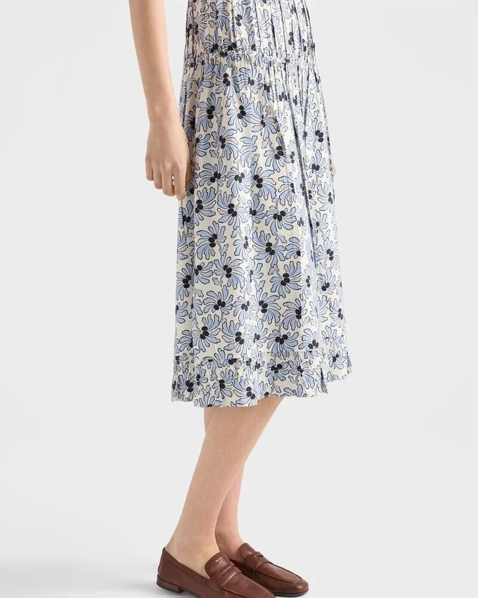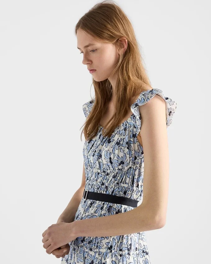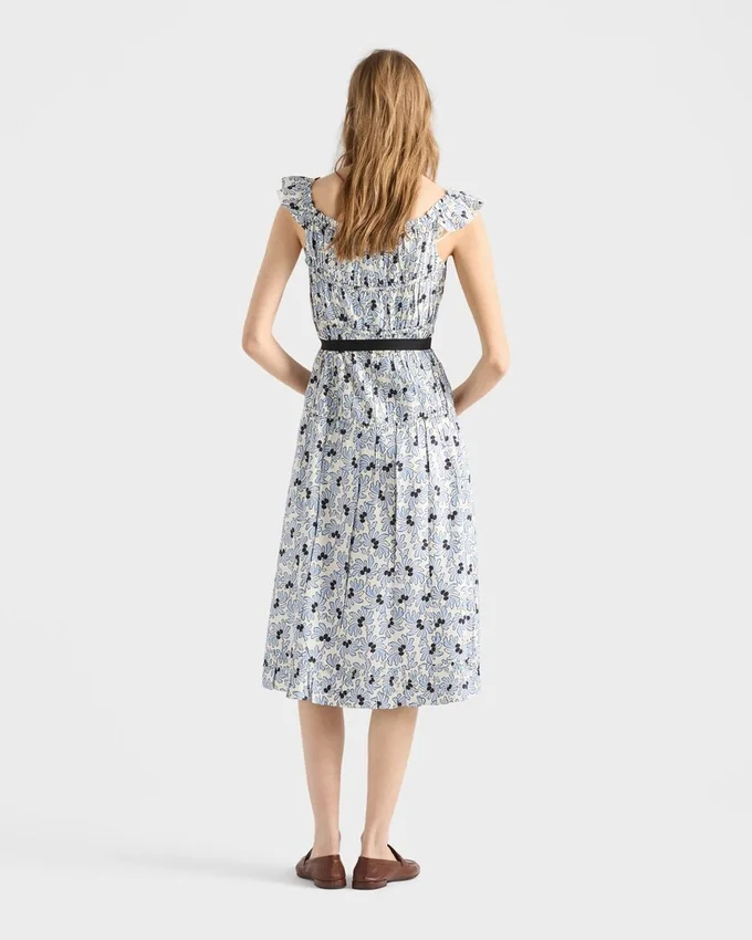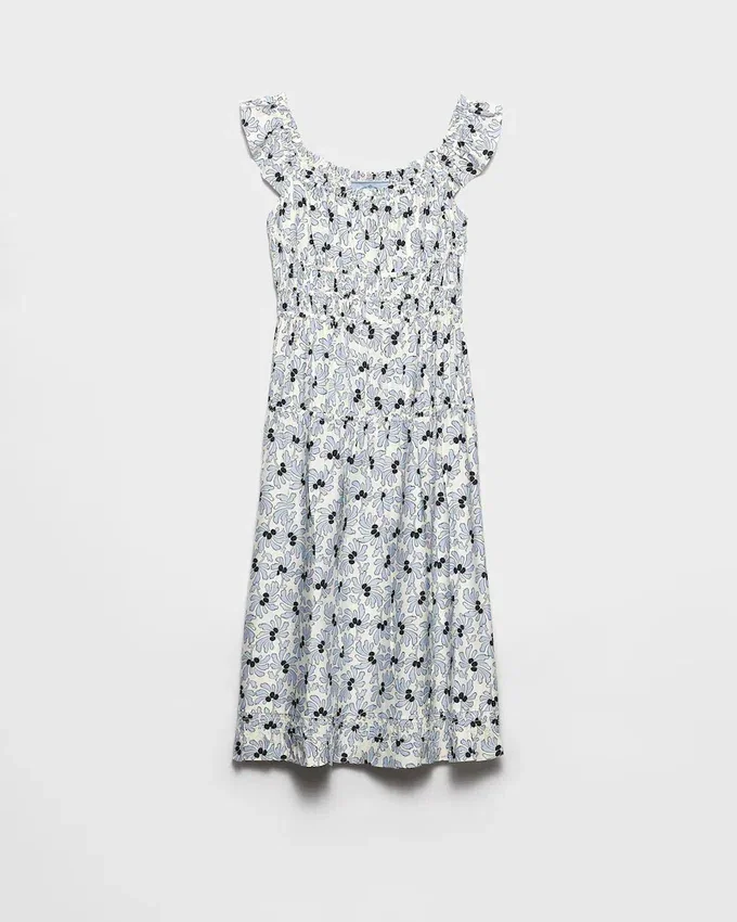 This Light, Feminine Ponga Dress Has a Flared Silhouette and Romantic Details. The Floral Print Brightens the Style Defined by the Draped Bodice and Refined Square Neckline with Ruffles.