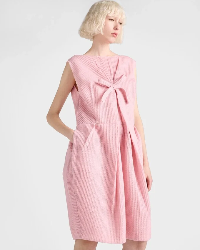 The Fall/Winter 2025 Collection Explores the Concept of Femininity and Redefines Its Symbols, Starting with the Dress. Crafted from Wool Knit, This Piece Blends Vintage-Inspired Accents with New Proportions and Refined Details. The Softly Shaped Silhouette is Enhanced by a Tone-On-Tone Bow, Expressing a Relaxed and Contemporary Elegance.