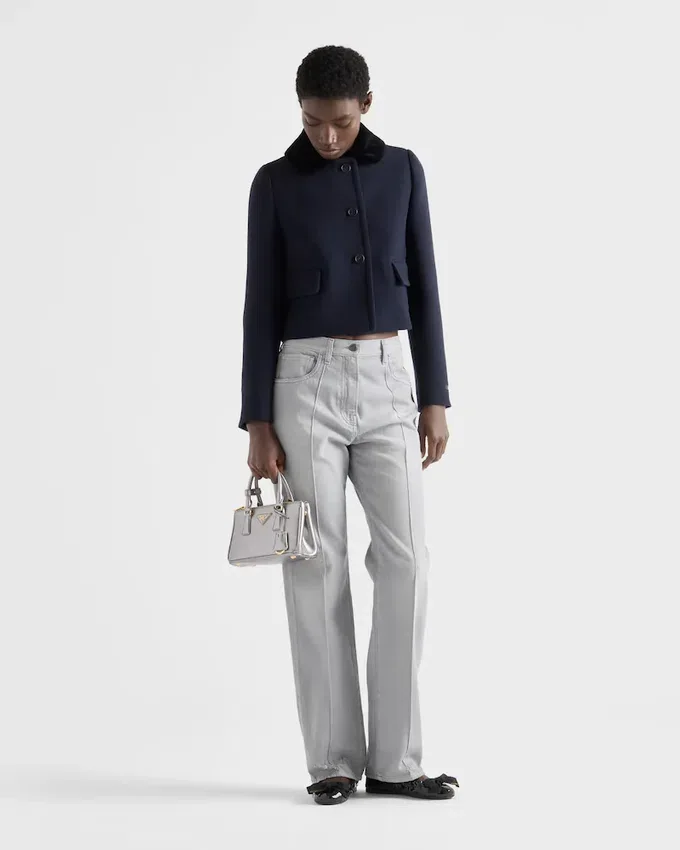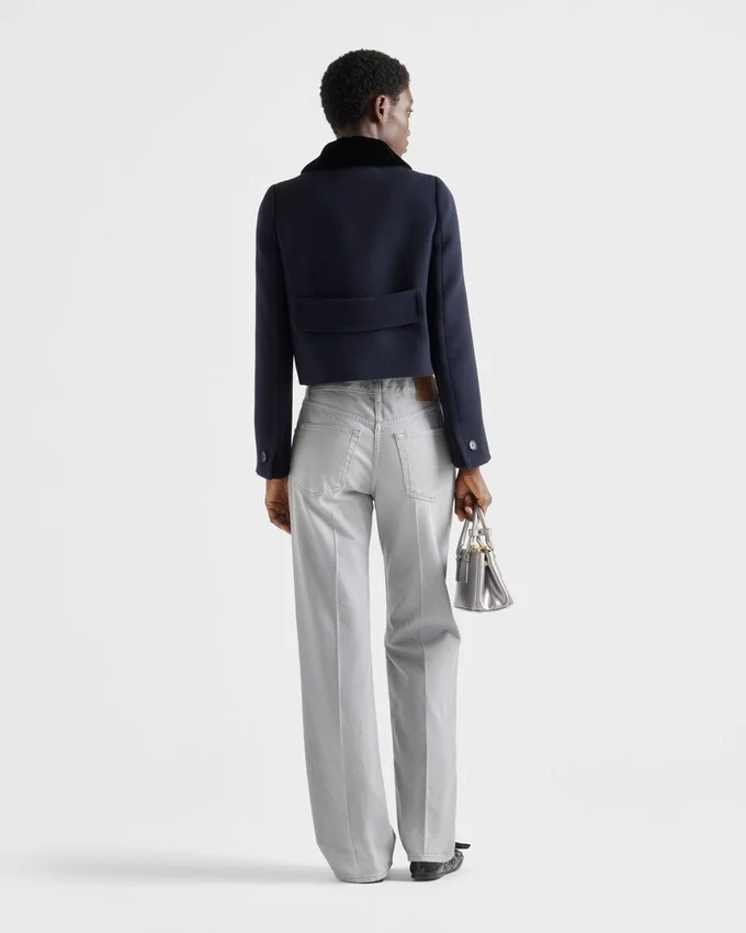 This Natta Fabric Jacket with Refined Details Features Bon Ton Allure and Contemporary Proportions. The Feminine Silhouette is Enriched by the Velvet Collar That Adds a Note of Timeless Elegance.