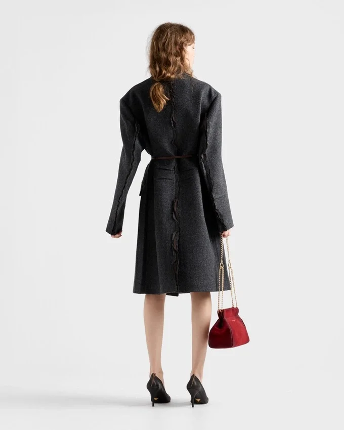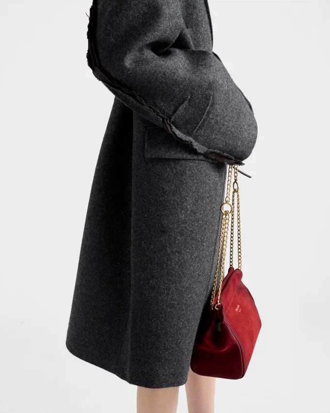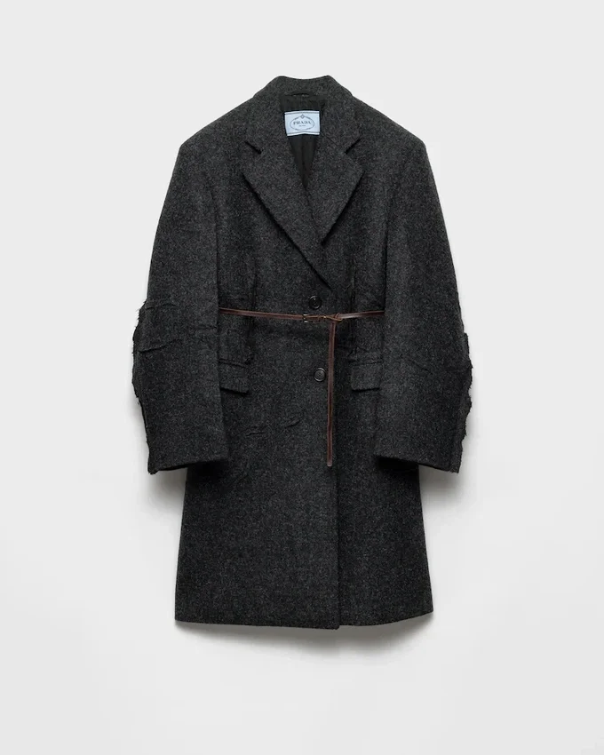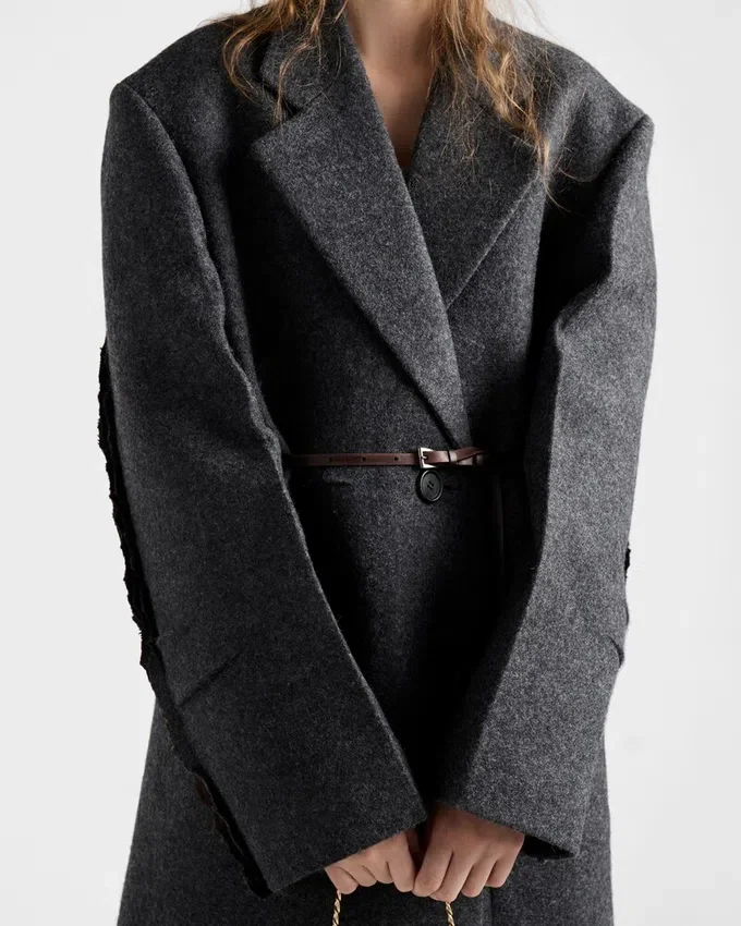 Sartorial Precision and the Unexpected Beauty of Imperfection Converge in the Design of This Shetland Wool Coat. An Original Language Transforms the Classic Silhouette with Raw, Intentionally Unfinished Details. Visible Seams, Pleats, and Raw-Cut Edges Redefine Shapes and Meanings, Evoking an Instinctive and Unconventional Elegance.
