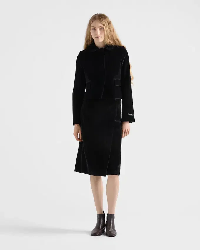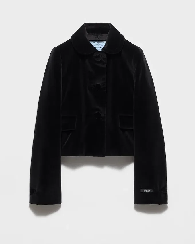 This Velvet Jacket with Refined Details Features Bon Ton Allure and Contemporary Proportions. The Feminine Silhouette is Enriched by the Removable Collar That Adds an Elegant, Versatile Touch.