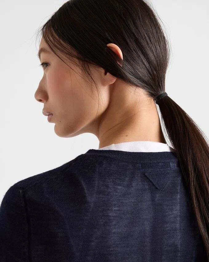 This Sweater, Which Combines Sophistication and Comfort, is Made from a Premium Cashmere and Silk Blend Yarn. The Soft, Slim Silhouette is Decorated with the Knit Triangle Logo.