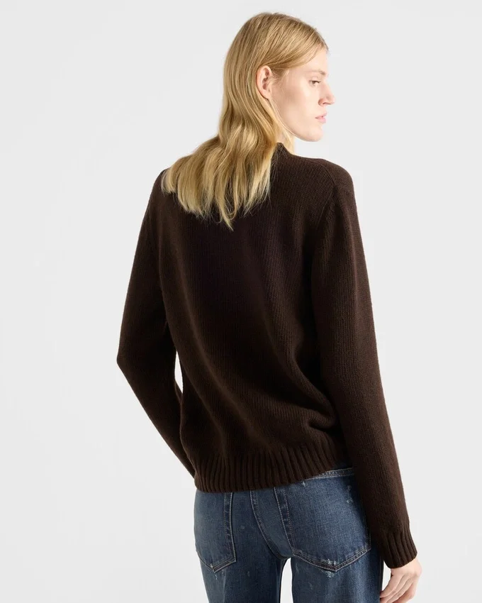 The Prada Logo is Presented as an Intarsia That Decorates This Wool and Cashmere Crew-Neck Sweater. The Sleek, Iconic Garment Has a Menswear Fit and Ribbed Knit Trim.