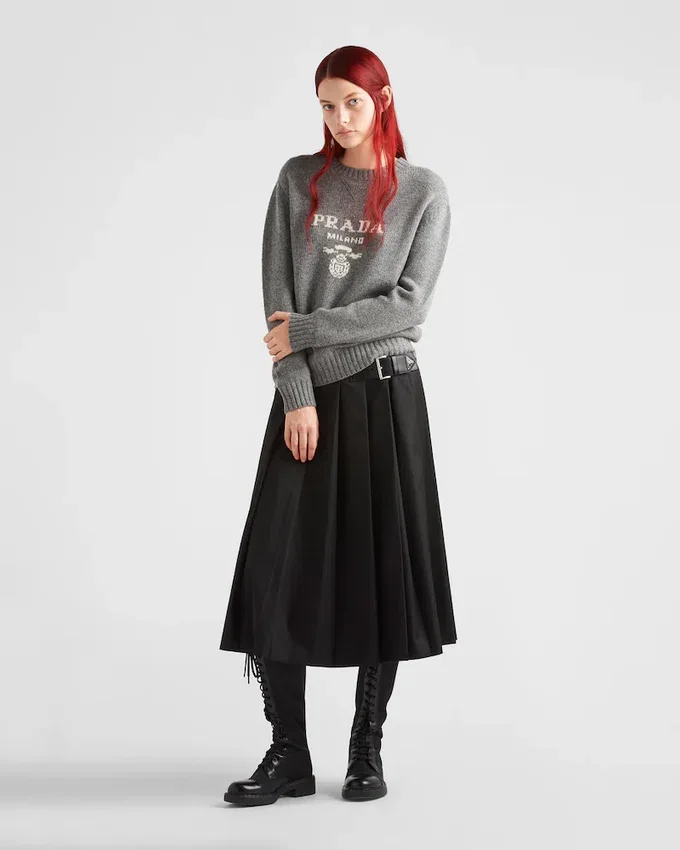 The Prada Logo is Presented as an Intarsia That Decorates This Wool and Cashmere Crew-Neck Sweater. The Sleek, Iconic Garment Has a Menswear Fit and Ribbed Knit Trim.