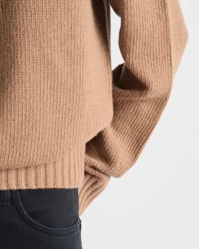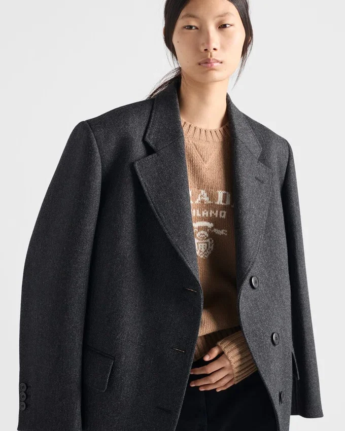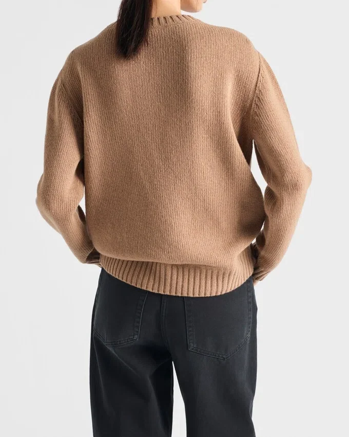 The Prada Logo is Presented as an Intarsia That Decorates This Wool and Cashmere Crew-Neck Sweater. The Sleek, Iconic Garment Has a Menswear Fit and Ribbed Knit Trim.