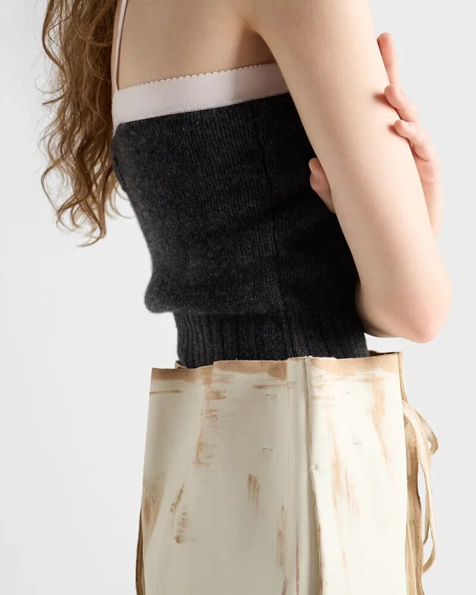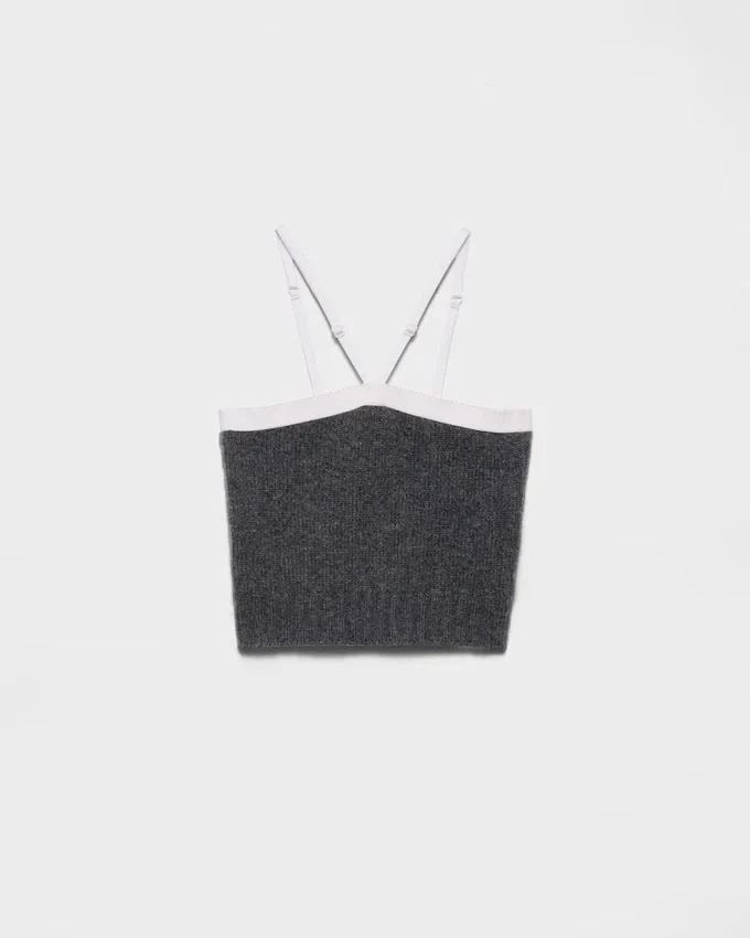 Unexpected Combinations Define the Design of This Bandeau Top with a Hybrid Style. The Piece is Enhanced by a Stretch Fabric Insert and Adjustable Straps, Creating a Striking Contrast to the Soft Texture of the Wool and Cashmere Knit.