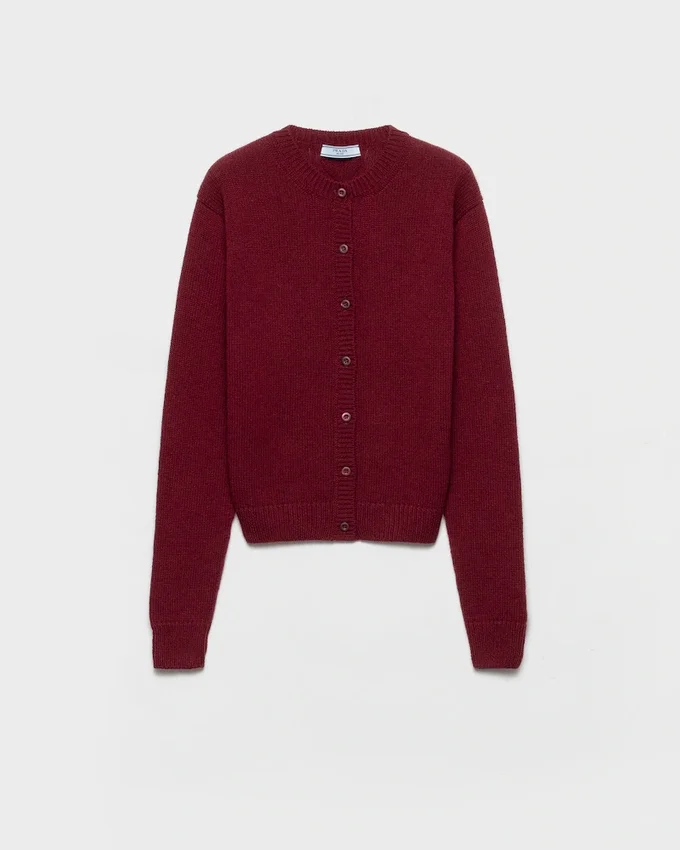 This Soft Cashmere Cardigan Features a Classic Boxy Silhouette Completed with Sleek Details Such as the Emblematic Tonal Knit Triangle Logo.