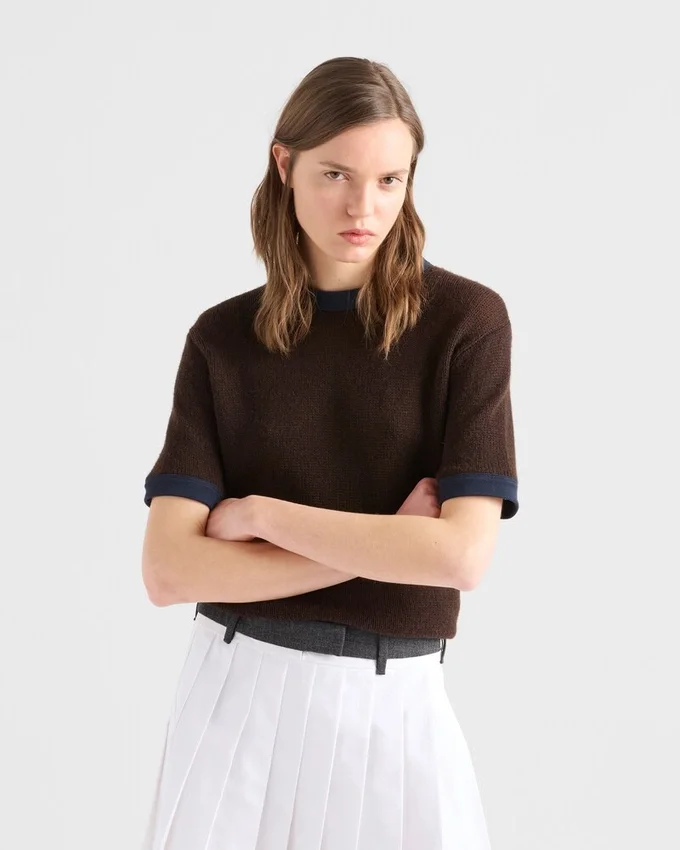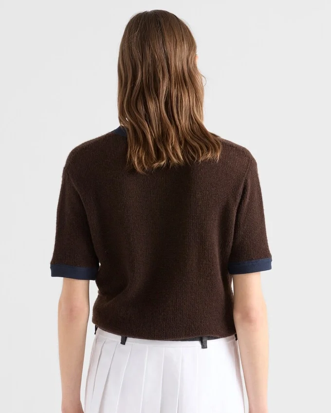 This Sweater, with a Design That Combines Elegance and Sport, is a Contemporary Interpretation of a Wardrobe Classic. The Short-Sleeved, Boxy Silhouette Made of Soft Cashmere is Enriched with Neck and Sleeve Trim in a Contrasting Color.