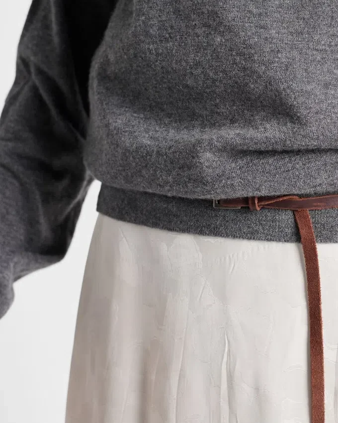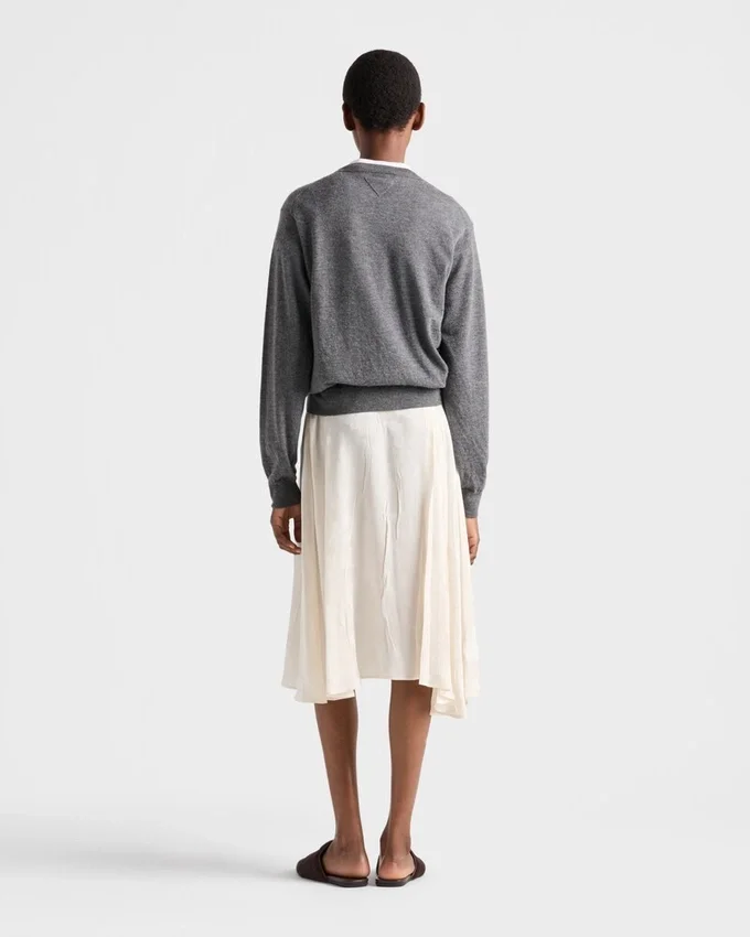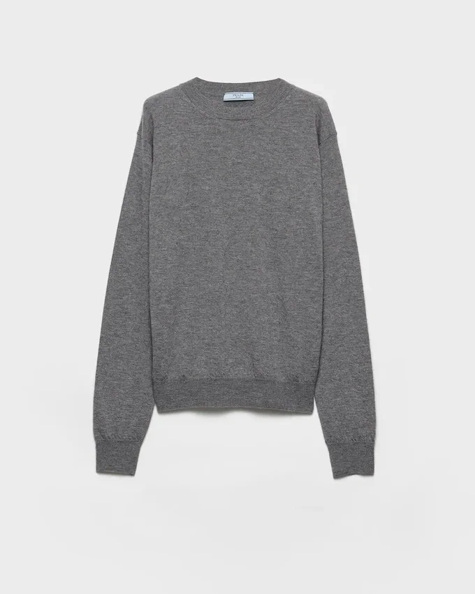 This Sweater with a Sleek Shape and Refined Materials is Made of Fine Cashmere with a Soft Silhouette Trimmed with Ribbed Knit Crew Neck, Cuffs and Hem. The Tonal Triangle Logo Enriches the Garment with Minimalist Elegance.
