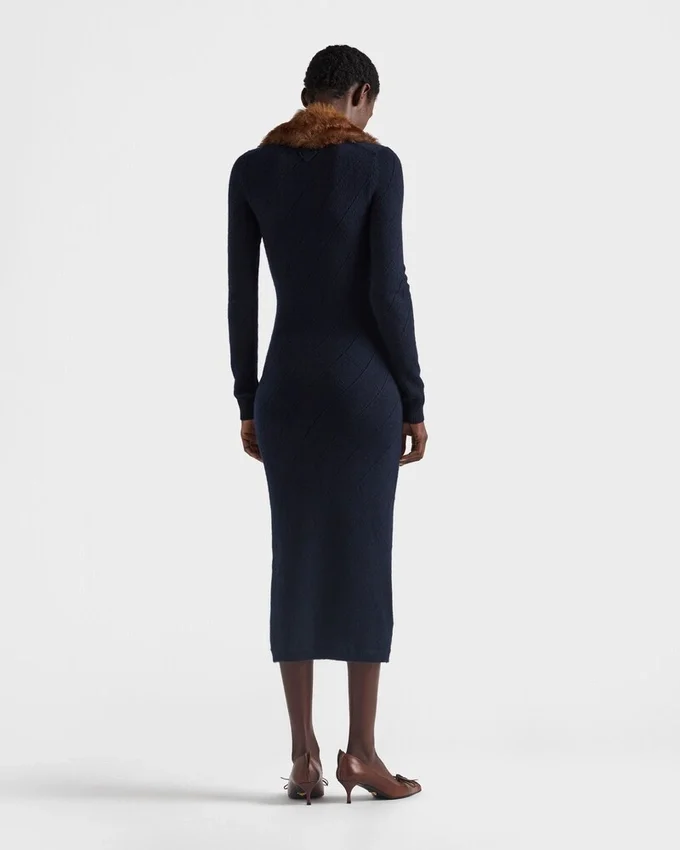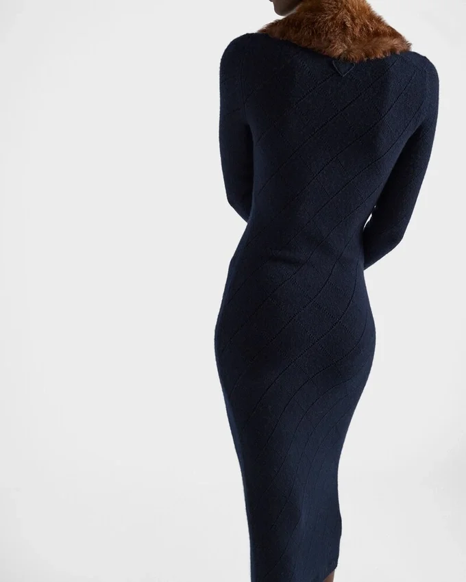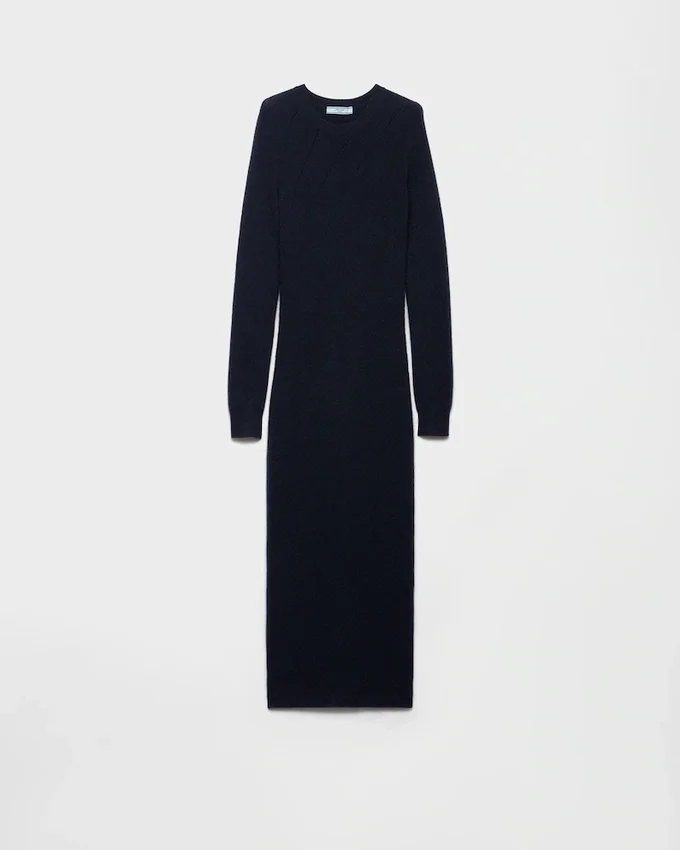 A Refined Openwork Motif Adds Delicate Charm to This Long-Sleeved Dress. The Soft Feel of Cashmere Adds a Comfortable, Sophisticated Touch to the Slim Fit Design.