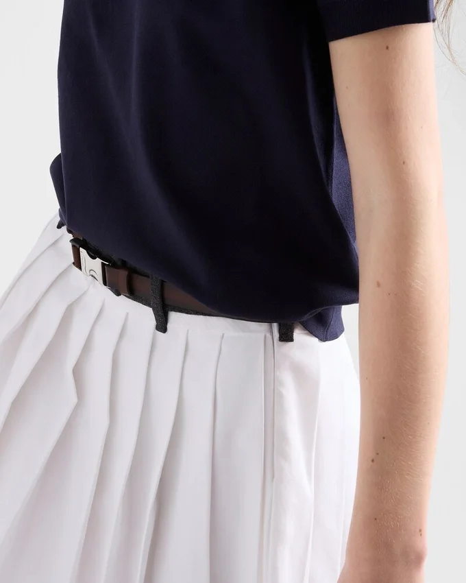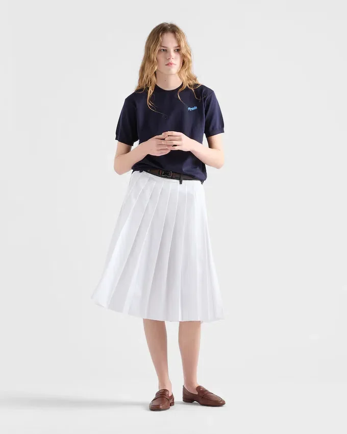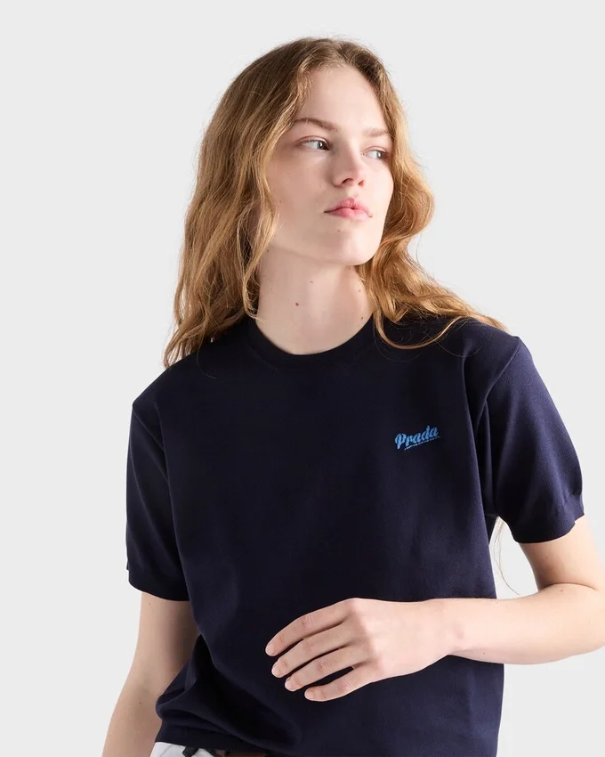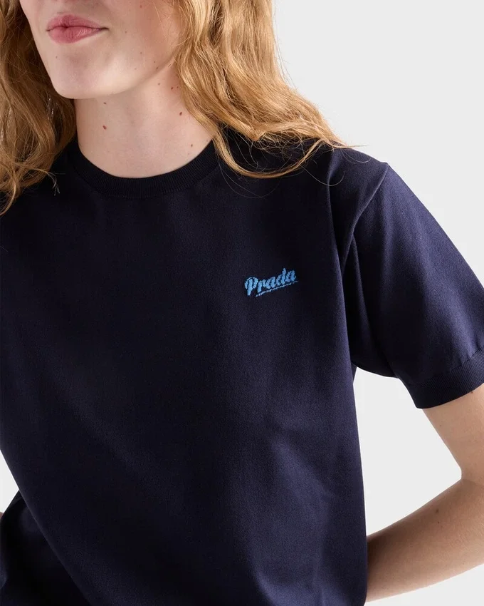 The Fluid Softness of Silk Gives This Short-Sleeved Sweater Refined Style. The Style That Combines Premium Materials with Relaxed Lines and Sporty Notes is Completed with the Prada Jacquard Logo.