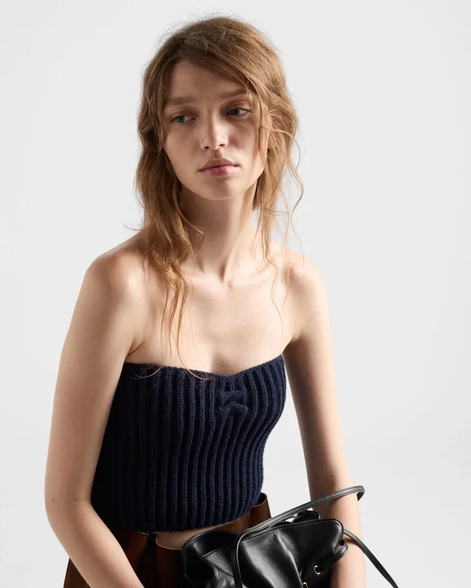 For the Fall/Winter 2025 Collection, Knitwear is Enriched with Jewel Details in a Dialogue Between Simplicity and Decoration. This Bandeau Top in a Fine Wool and Cashmere Blend is Completed with an Elegant Mother-Of-Pearl Pendant.