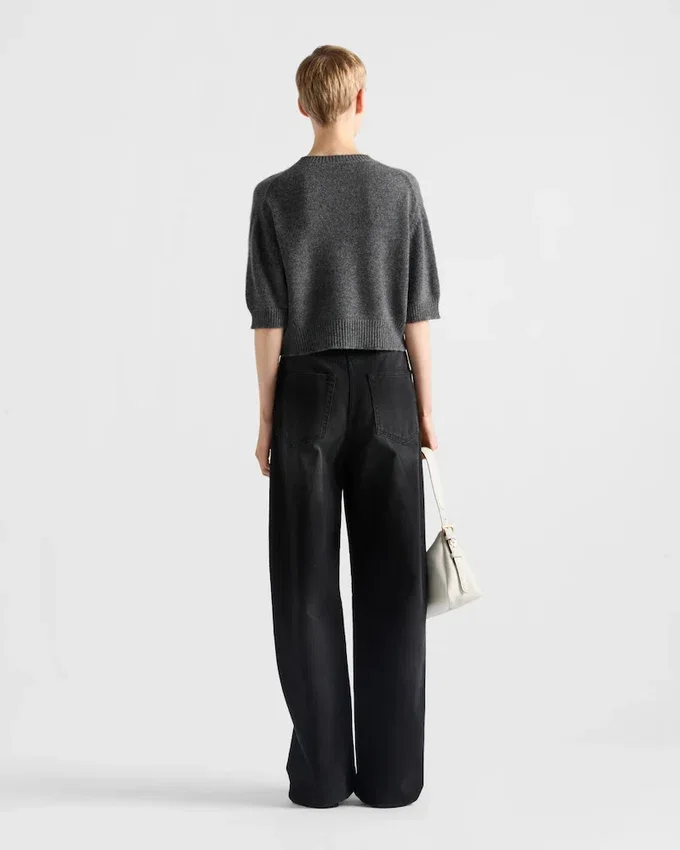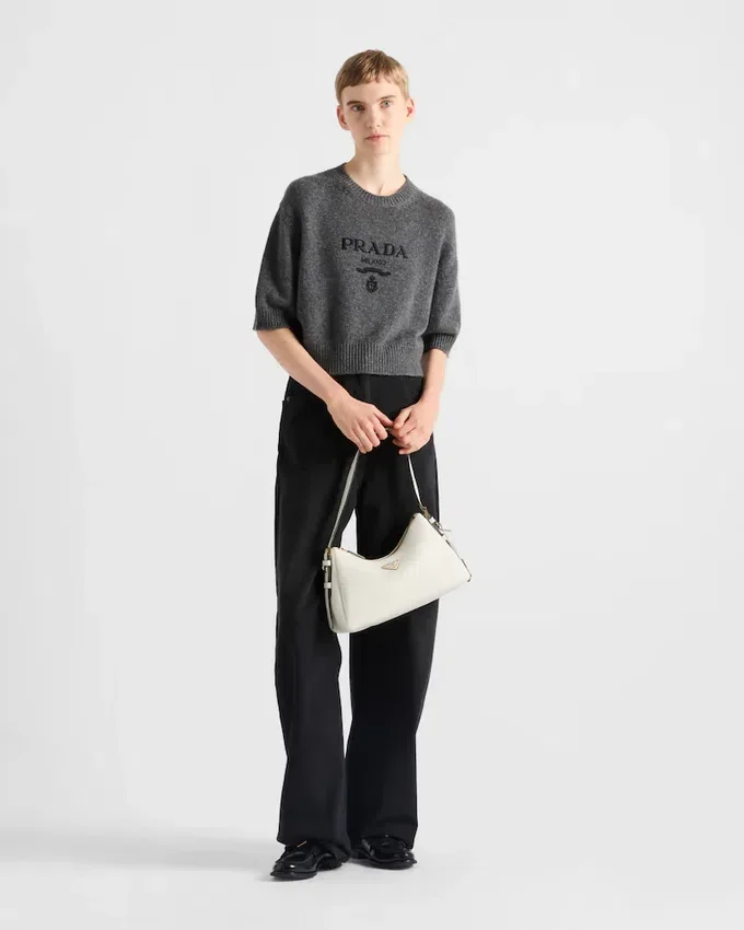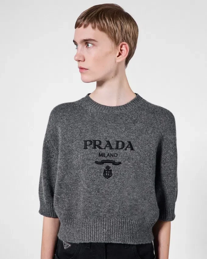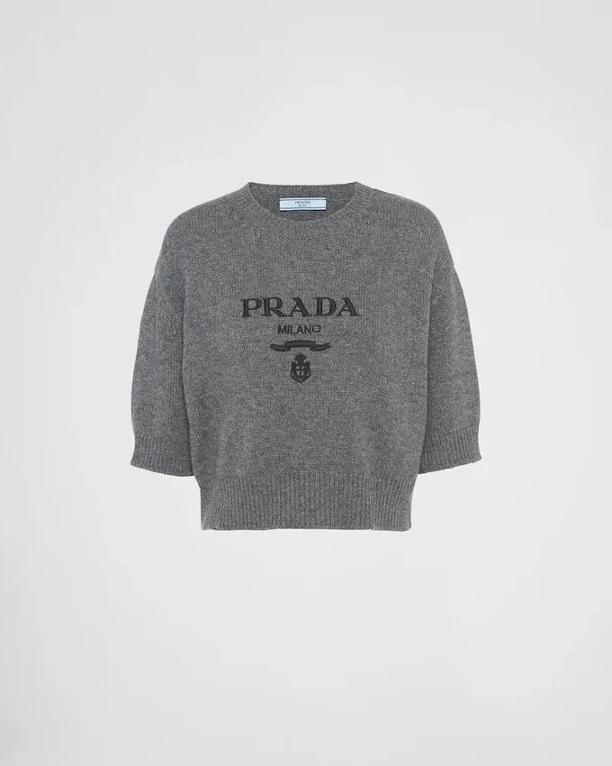 Made of Soft Wool and Cashmere, This Sweater with Sleek Allure is Embellished with Ribbed Knit Trim on the Hem, Sleeves, and Neck. The Intarsia Lettering Logo Enhances the Design of the Garment.