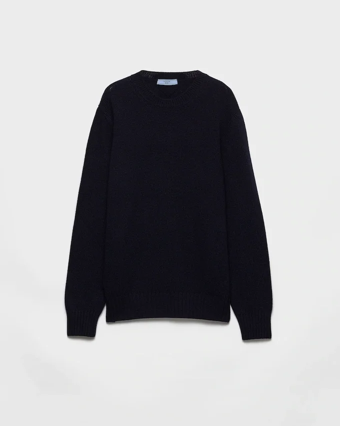 Clean Lines with a Minimalist Cut Reinterpret the Sleek Design of This Long-Sleeved Sweater Made of Warm Wool and Cashmere. A Wardrobe Classic is Reinterpreted According to a Contemporary Language and Transformed into a Garment Featured in Unexpected Combinations. The Soft, Relaxed Menswear-Inspired Silhouette is Embellished with the Triangle Logo on the Back That Completes the Garment with an Iconic Touch.