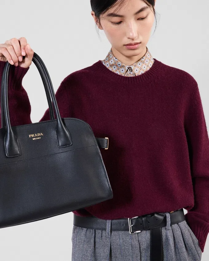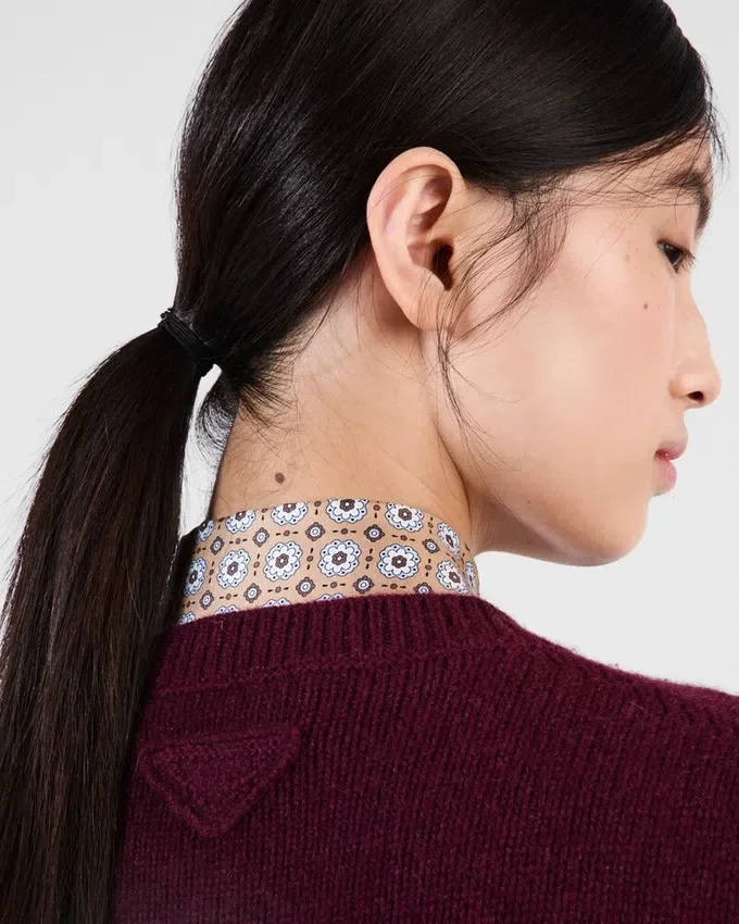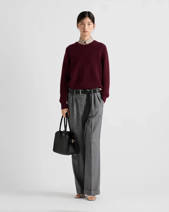 Clean Lines with a Minimalist Cut Reinterpret the Sleek Design of This Long-Sleeved Sweater Made of Warm Wool and Cashmere. A Wardrobe Classic is Reinterpreted According to a Contemporary Language and Transformed into a Garment Featured in Unexpected Combinations. The Soft, Relaxed Menswear-Inspired Silhouette is Embellished with the Triangle Logo on the Back That Completes the Garment with an Iconic Touch.