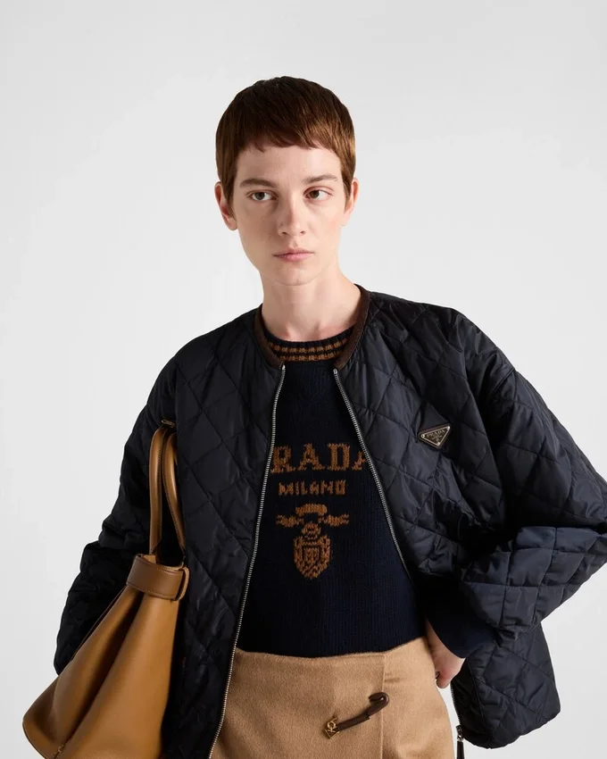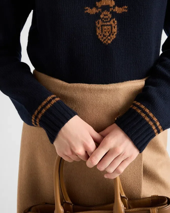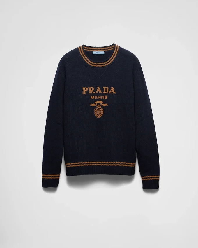 The Classic Silhouette of This Crew-Neck Sweater is Made of Soft, Light Wool and Cashmere Blend Yarn. The Design, with a Ribbed Knit Crew Neck, Cuffs and Hem, is Characterized by the Intarsia Knit That Animates the Style, Revealing the Prada Logo in a Contrasting Shade.