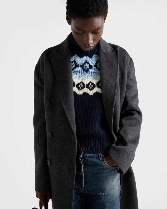 Made with a Premium Blend of Wool and Cashmere, This Sweater Reinterprets Apras-Ski Style with a Contemporary Design Mixing Comfort and Sophistication. The Boxy Silhouette with Turtleneck and Three-Quarter Sleeves is Enriched by the Intarsia Knit That Recalls a Classic Winter Motif.