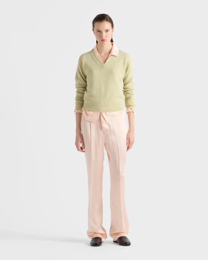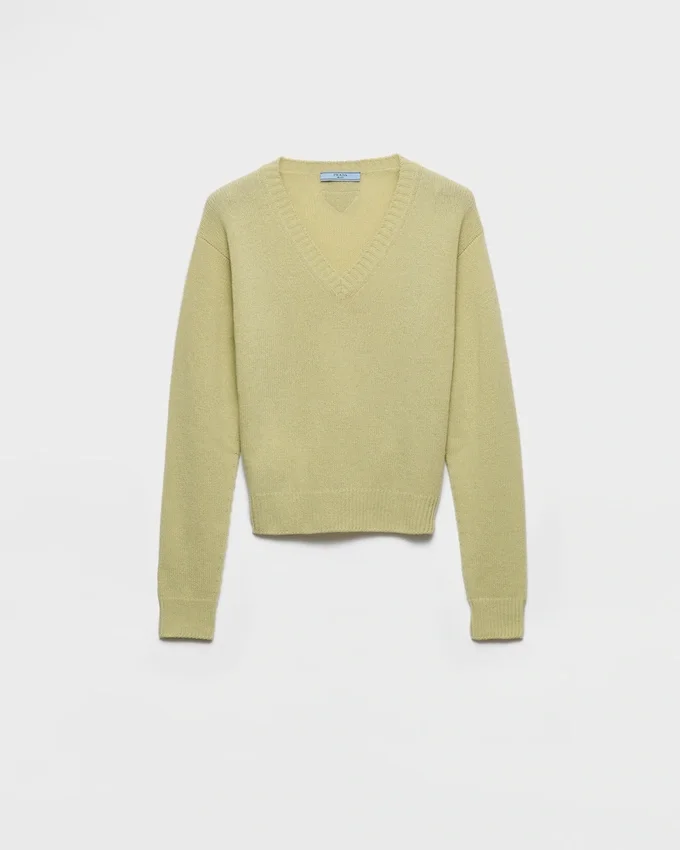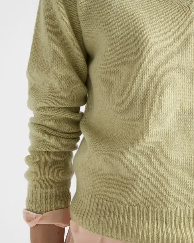 This Sweater That Combines Sophistication and Comfort is Made with a Premium Blend of Wool and Cashmere That Gives the Silhouette Softness and Structure. The Relaxed Fit Style with V Neck is Decorated with the Tonal Triangle Logo.