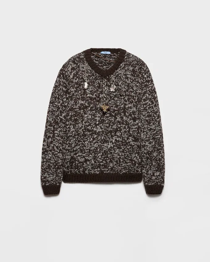 For the Fall/Winter 2025 Collection, Knitwear is Enriched with Jewel Details and Precious Embellishments. This Wool Sweater with a Slim Silhouette is Embellished with Metal Details in a New Dialog Between Classic Shapes and Symbolic Meanings.