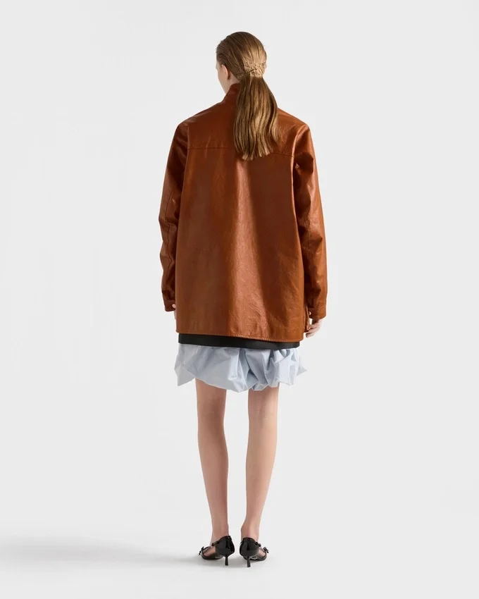 Antiqued Leather Caban Jacket