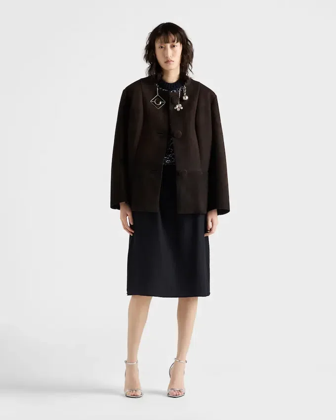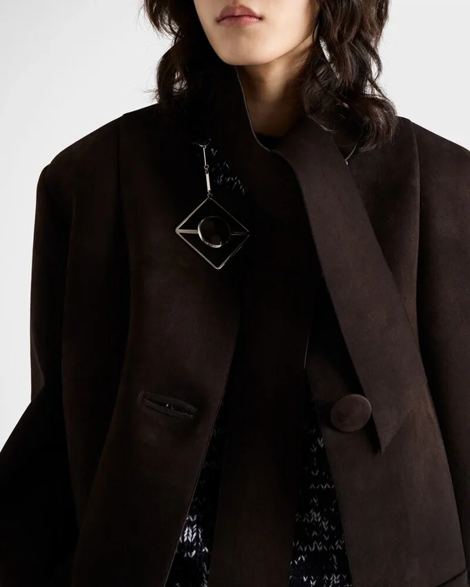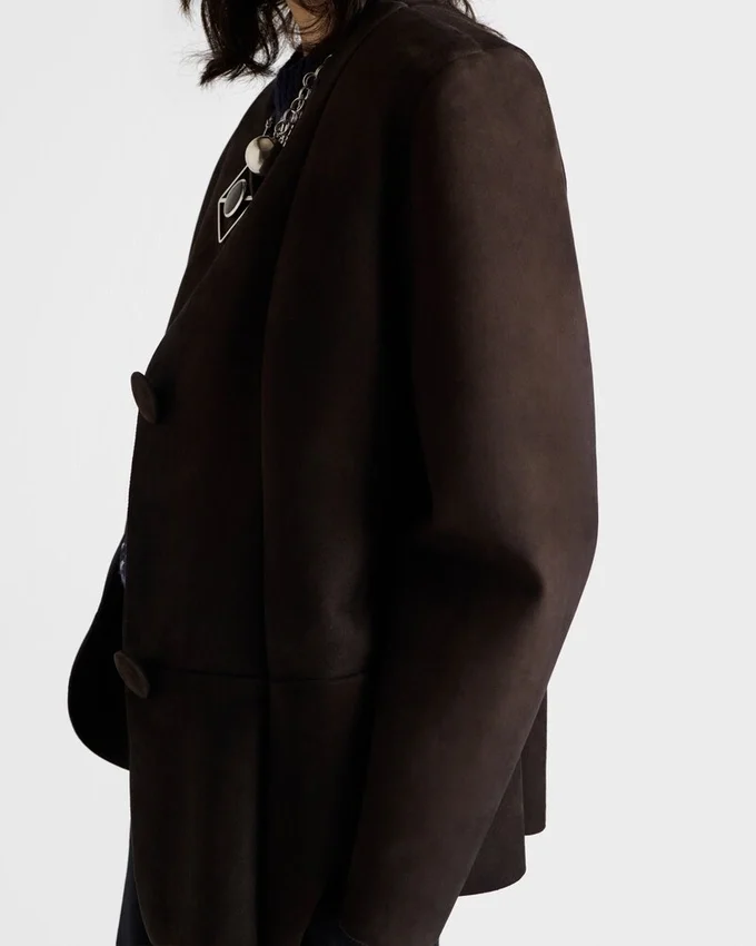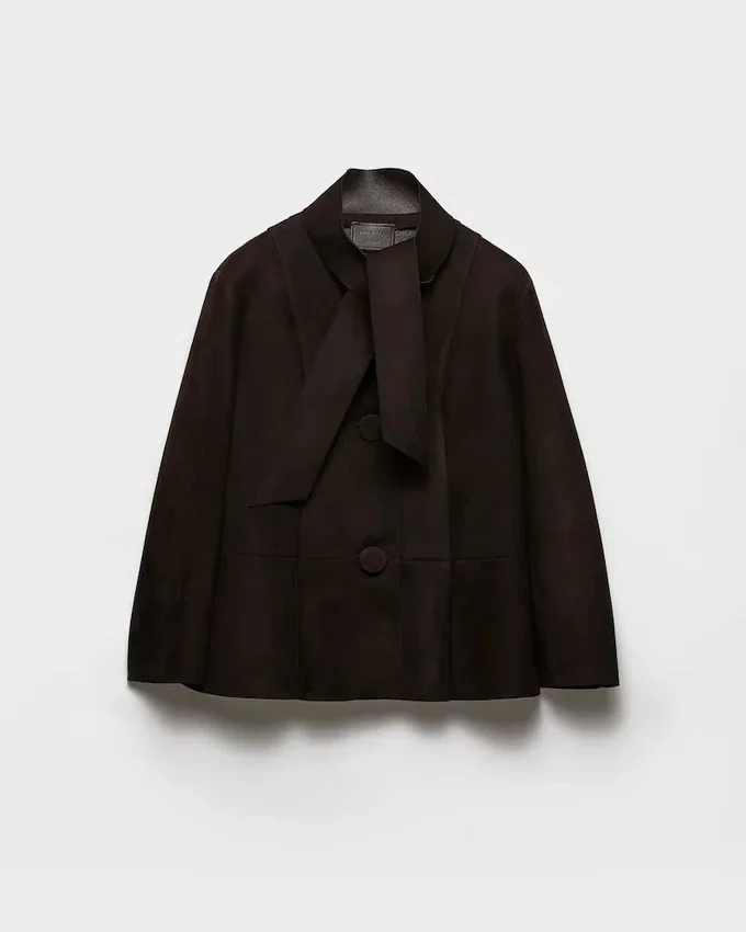 Pure Lines and Vintage-Inspired Details Characterize This Jacket with a Sophisticated Design, Accompanied by a Tonal Scarf. The Garment is Made of Suede That Has Undergone Innovative Processes That Give It a Soft, Light Look and Add a Three-Dimensional Effect to the Style.