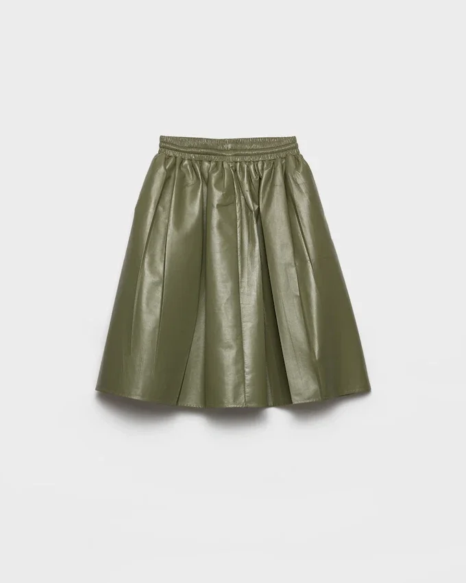 Rigorous Pleating is Renewed and Acquires Unexpected Freedom in This Leather Skirt with an Elasticized Waistband. The Pressing Process Gives New Dynamism to the Design.