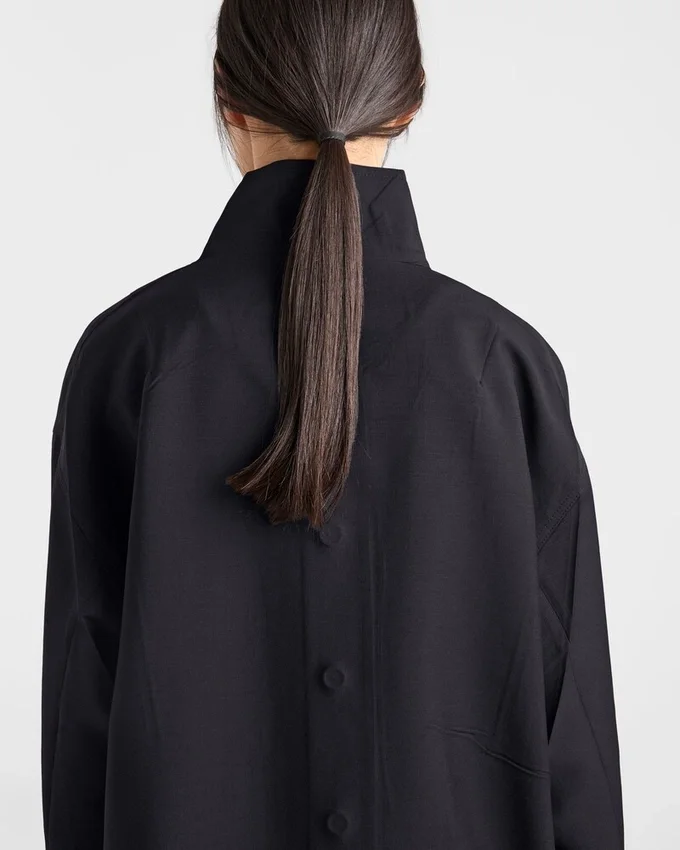 Structure Becomes Soft: Poplin and Kid Mohair Define Modern Volumes, Embellished with Patch Pockets and a Button Closure. Sartorial Tailoring Gives Shape to an Everyday Garment with a Strong Character.