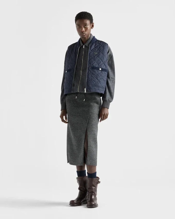 This Light and Sophisticated Vest Combines Sleek Design and Precious Details Like the Metal Triangle Logo and Velvet Trim, an Expression of Modern Craftsmanship. For Sustainable Care to Preserve the Product’s Characteristics and Reduce Microfiber Shedding, We Recommend Not Washing the Item Too Often. Let the Product Air out After Every Use and Follow the Washing Instructions on the Label.