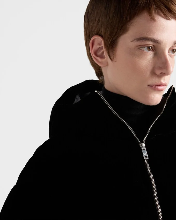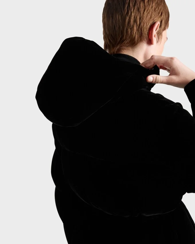 Elegance Comes to Life Through the Fabric. Padded Velvet Envelops the Body with Warmth and Softness. The Elasticized Waistband and Adjustable Drawstring Make the Garment Dynamic, in Sync with the Body.