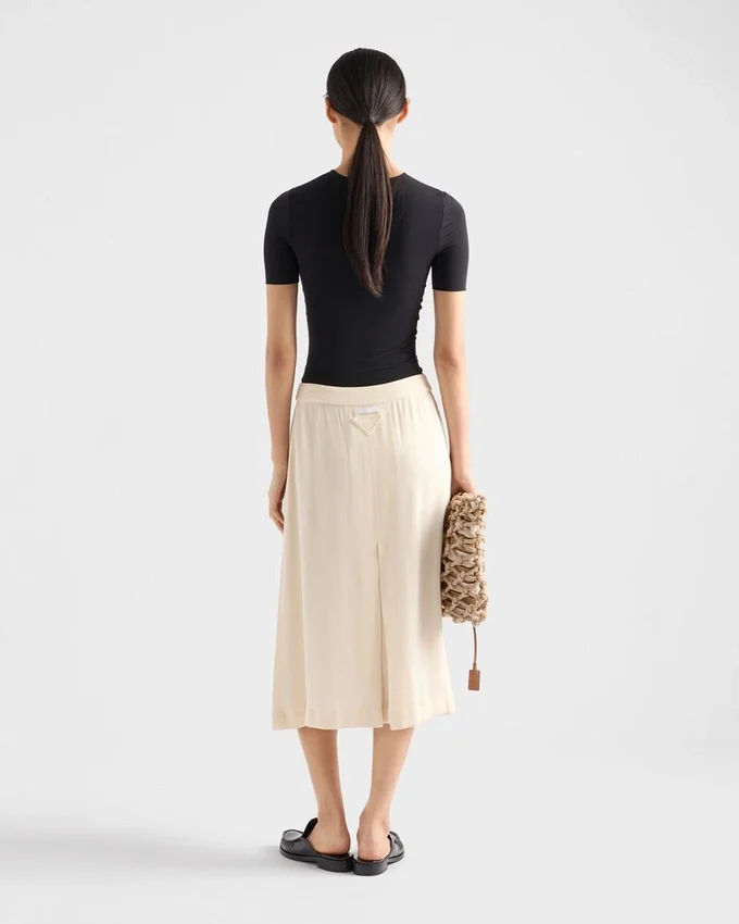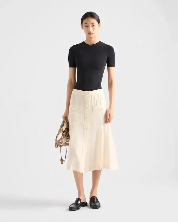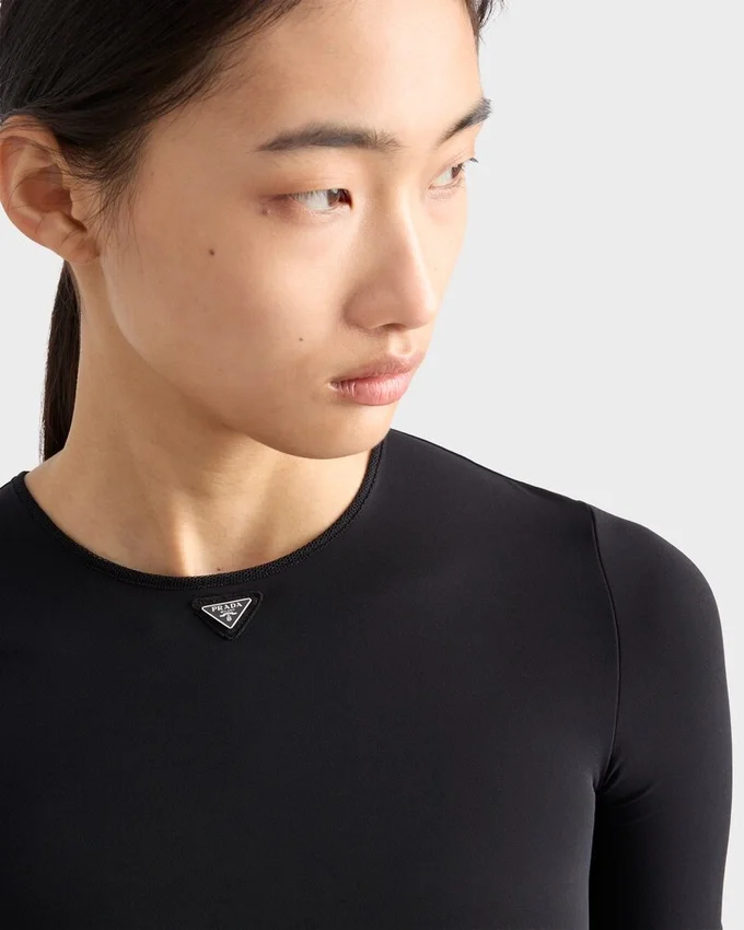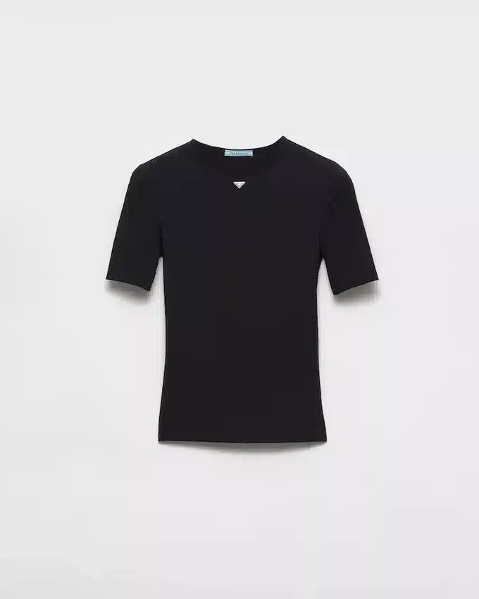 This Short-Sleeved Stretch Fabric Tee Has a Sleek Silhouette with a Slim Fit, Decorated with the Iconic Enameled Metal Triangle Logo.