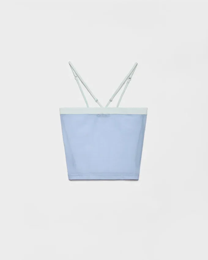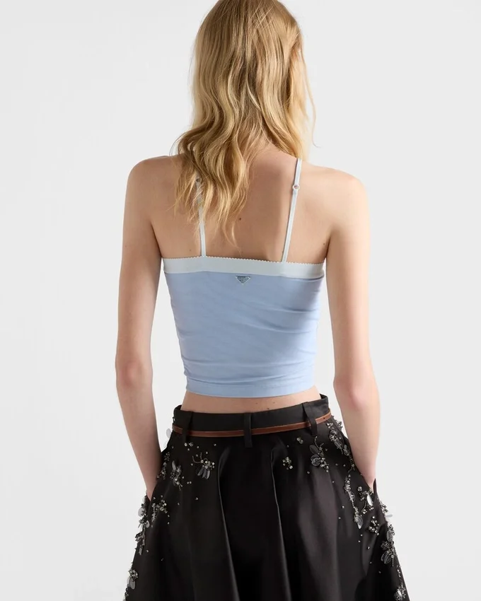 An Airy Yet Bold Look: This Tulle Top is Defined in Its Simplicity by Its Slim Fit and Thin Shoulder Straps the Triangle Logo Elegantly Adds Its Signature Touch, Playing with Transparencies and Symbols.